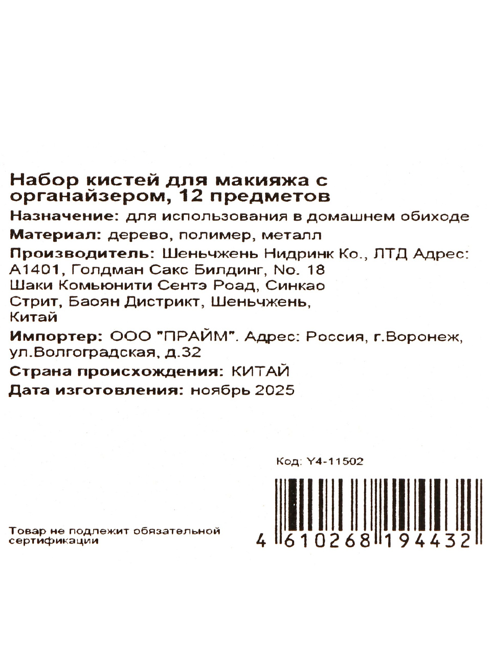 Набор кистей для макияжа с органайзером, 12 пр, белый Y4-11501 — идеальное решение для безупречного макияжа дома и в поездках: полный комплект, стильный дизайн, долговечность.