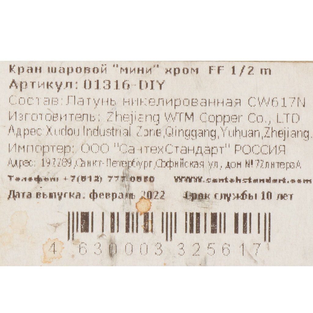 Диаметр подключения — 1/2", тип присоединения — г-г (гнездо-гнездо), прямой корпус, управление — ручка-флажок.