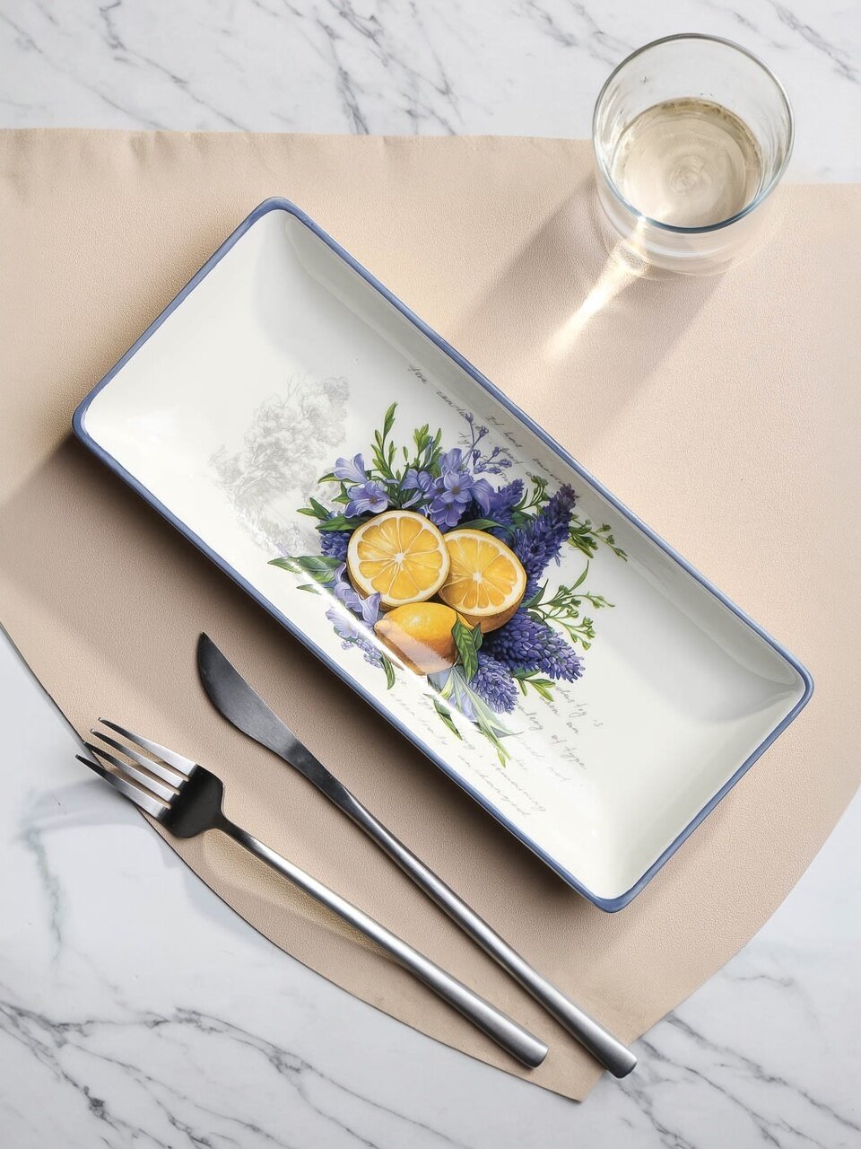 Блюдо из доломита Daniks Лаванда — это универсальный сервировочный аксессуар, который гармонично впишется в любой интерьер. Прямоугольная форма с бортиками позволяет удобно размещать закуски, салаты, фрукты или десерты. Благодаря декоративному рисунку блюдо станет центром внимания на праздничном столе или уютным акцентом для семейных ужинов. Часто спрашивают, чем доломит отличается от фарфора или стекла: доломит устойчив к сколам, хорошо держит форму, а рисунок долго сохраняет насыщенность.