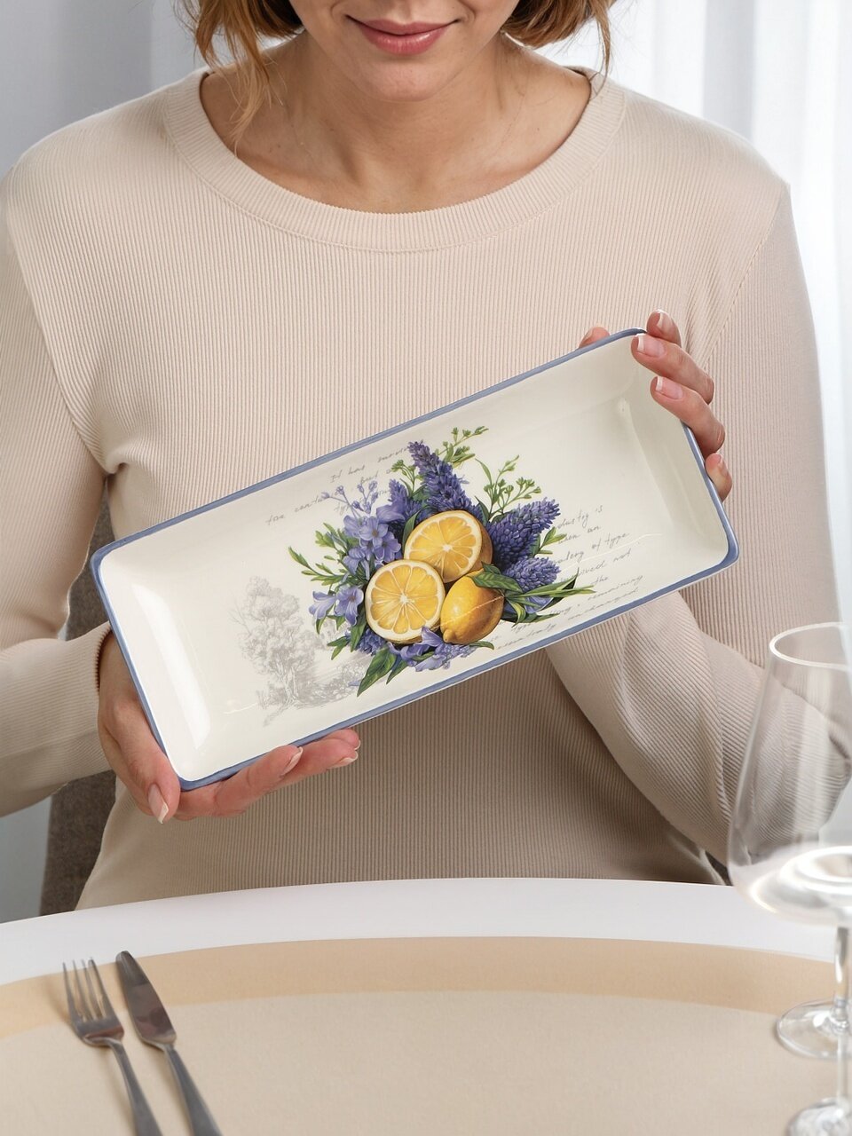 Блюдо Daniks Лаванда из доломита 28х12 см — стильный акцент для сервировки, идеальный подарок и практичное решение для закусок и фруктов.