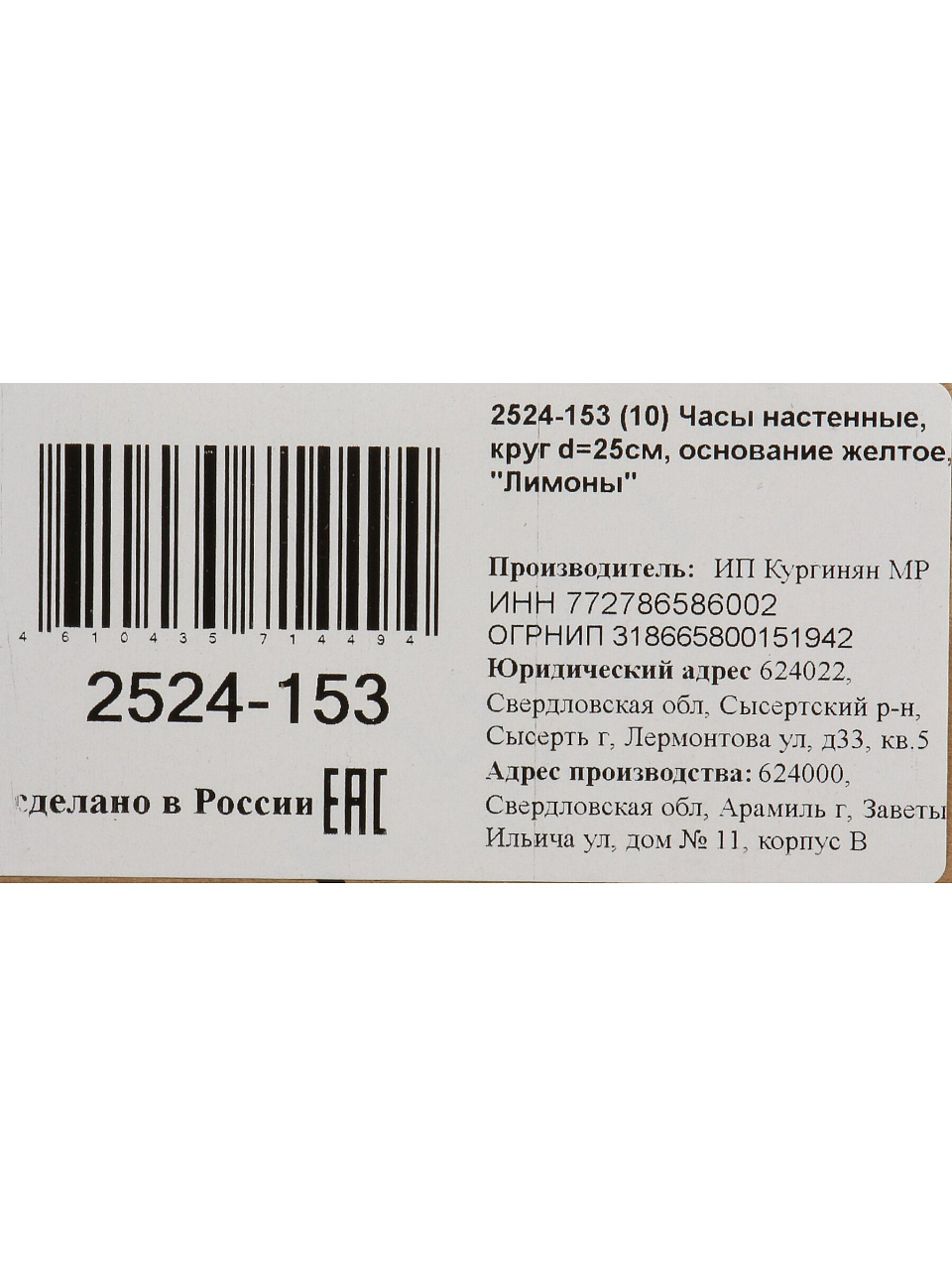Вы можете приобрести «Часы настенные, кварцевые, 25 см, основание желтое, круглые, Рубин, Лимоны, 2524-153» и другие товары в нашем интернет-магазине в Твери по низким ценам и с бесплатным самовывозом.