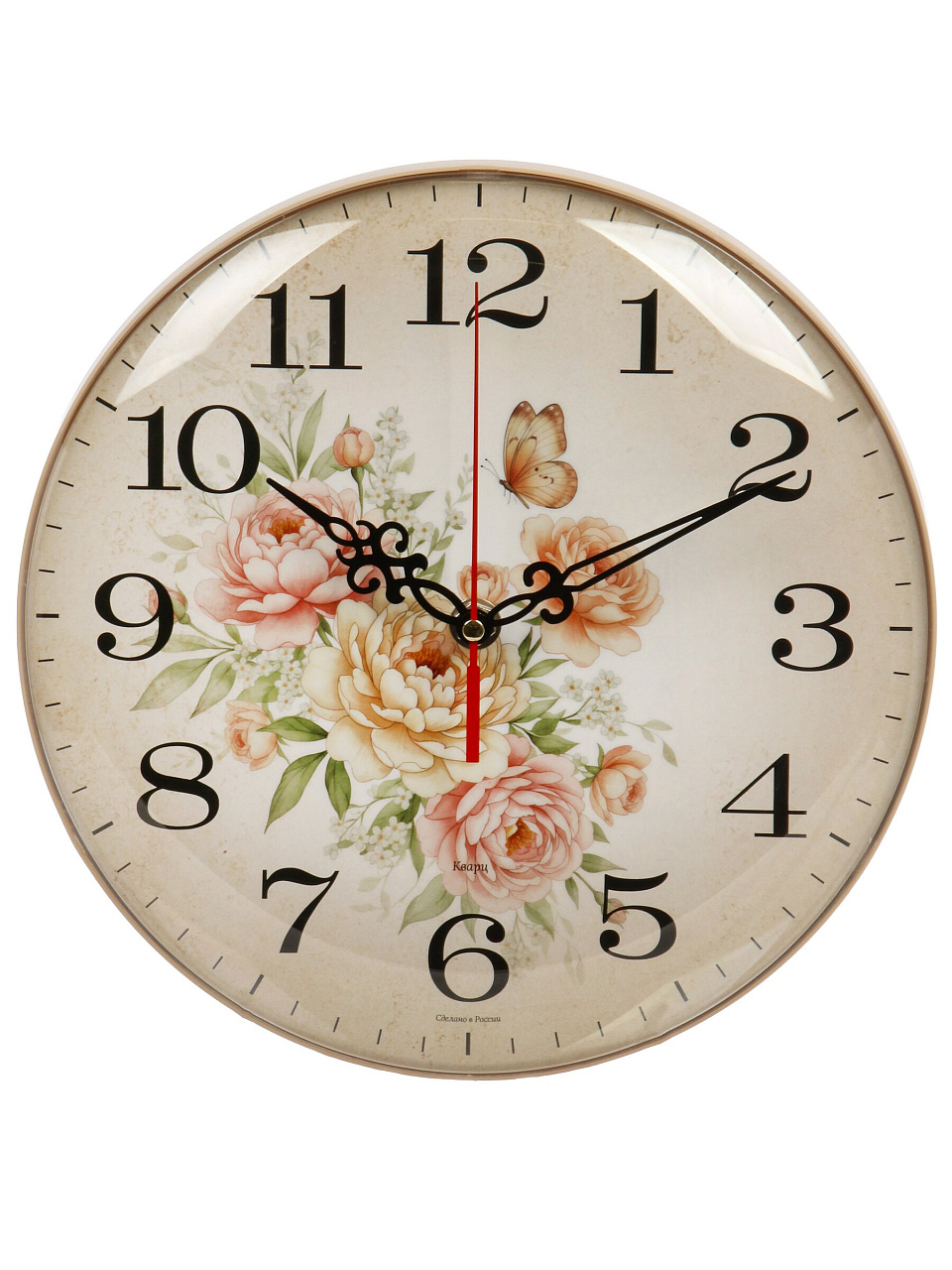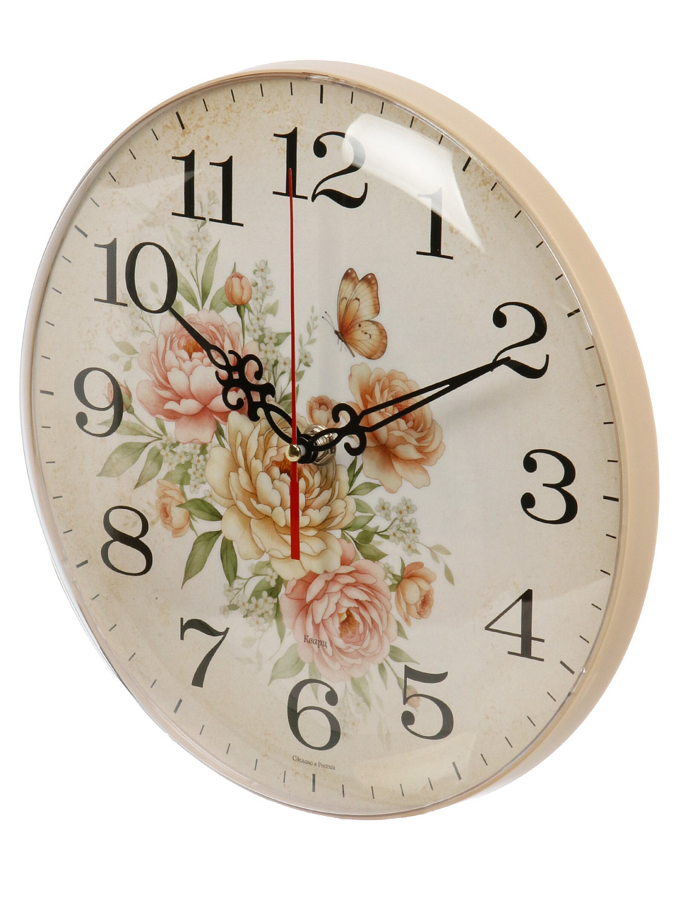 Настенные кварцевые часы d=25 см «Рубин» с бежевым основанием и цветочным узором — стильный акцент для дома, дачи или подарка. Точный ход, долговечный механизм, гармония в интерьере.