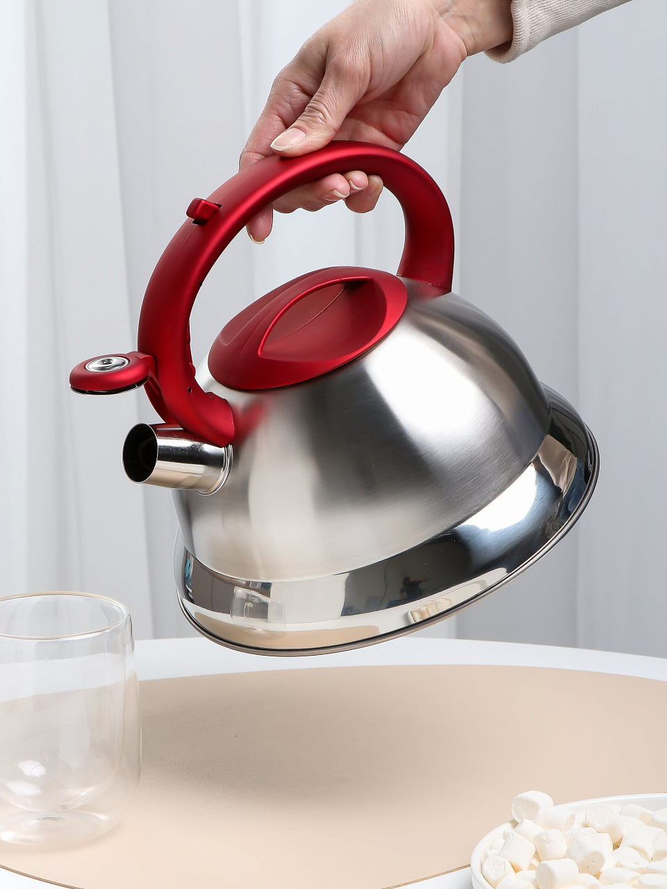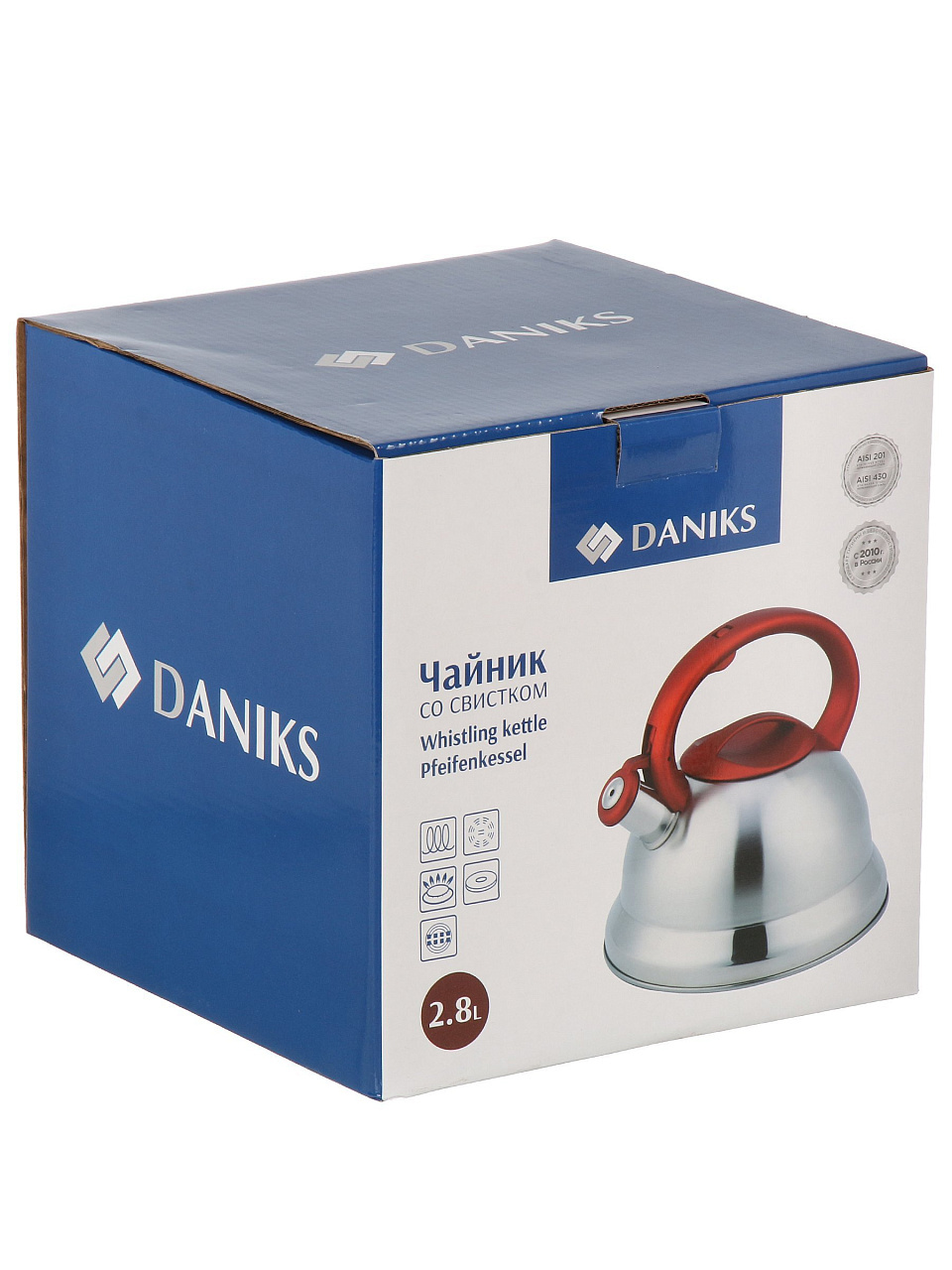 Вы можете приобрести «Чайник нержавеющая сталь, 2.8 л, со свистком, матовый, ручка с силиконовым покрытием, Daniks, красный, MSY-013R» и другие товары в нашем интернет-магазине в Липецке по низким ценам и с бесплатным самовывозом.