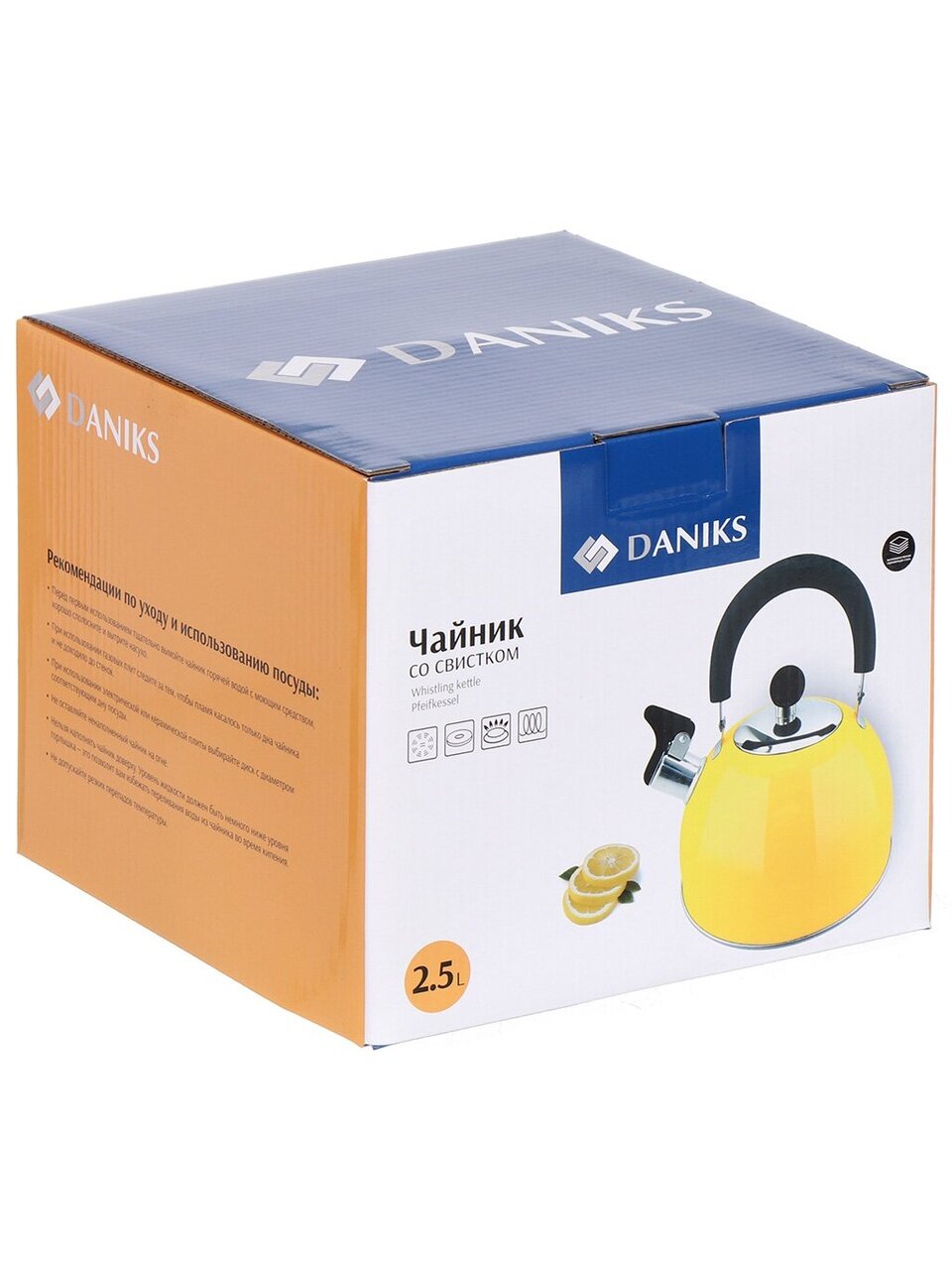 Вы можете приобрести «Чайник нержавеющая сталь, 2.5 л, со свистком, матовый, ручка металлическая, Daniks, желтый, GS-04011» и другие товары в нашем интернет-магазине в Астрахани по низким ценам и с бесплатным самовывозом.