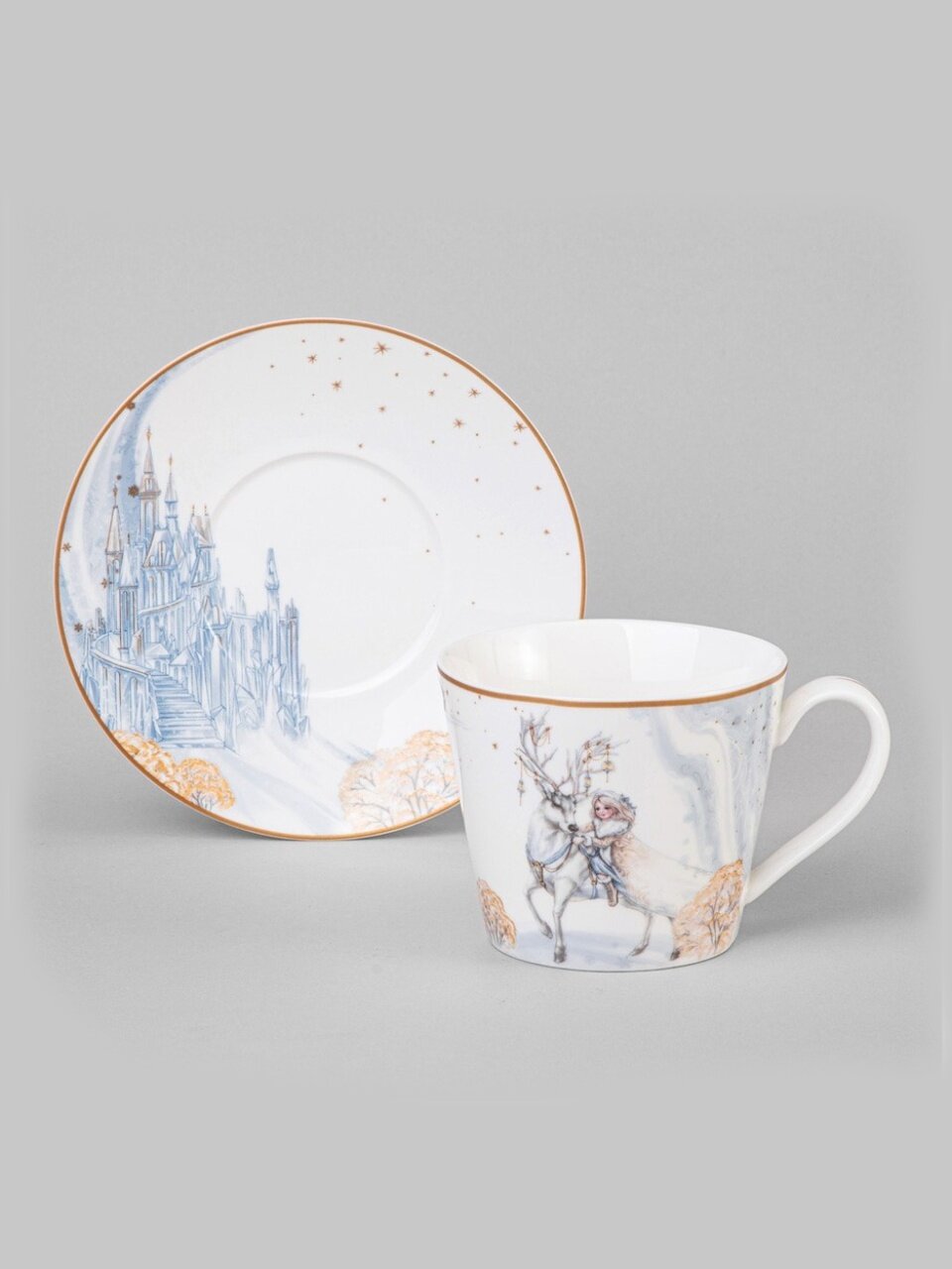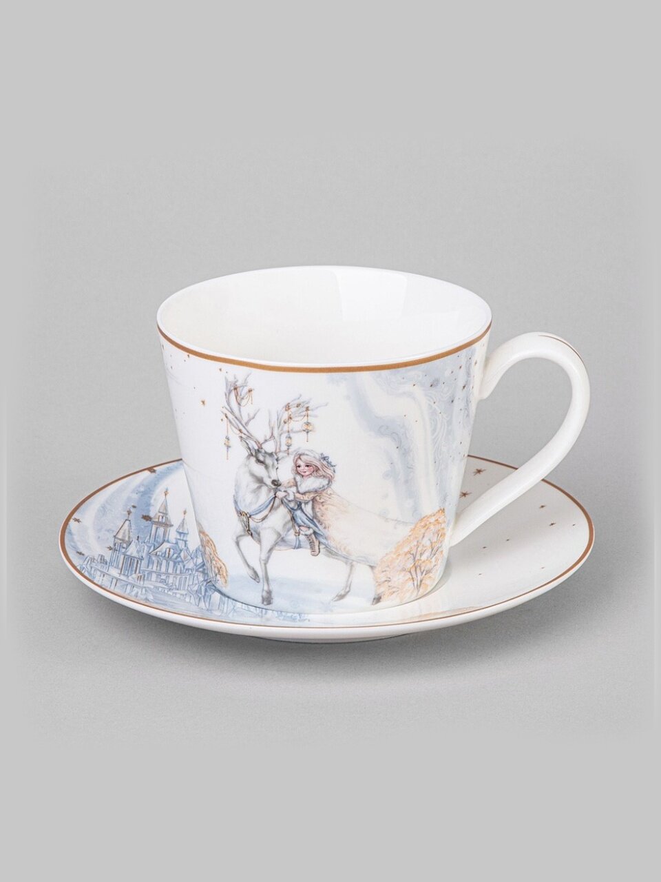 Чайная пара Lefard «Снежная королева» 300 мл: элегантный фарфор для новогоднего уюта и стильного подарка — доступно, практично, долговечно.