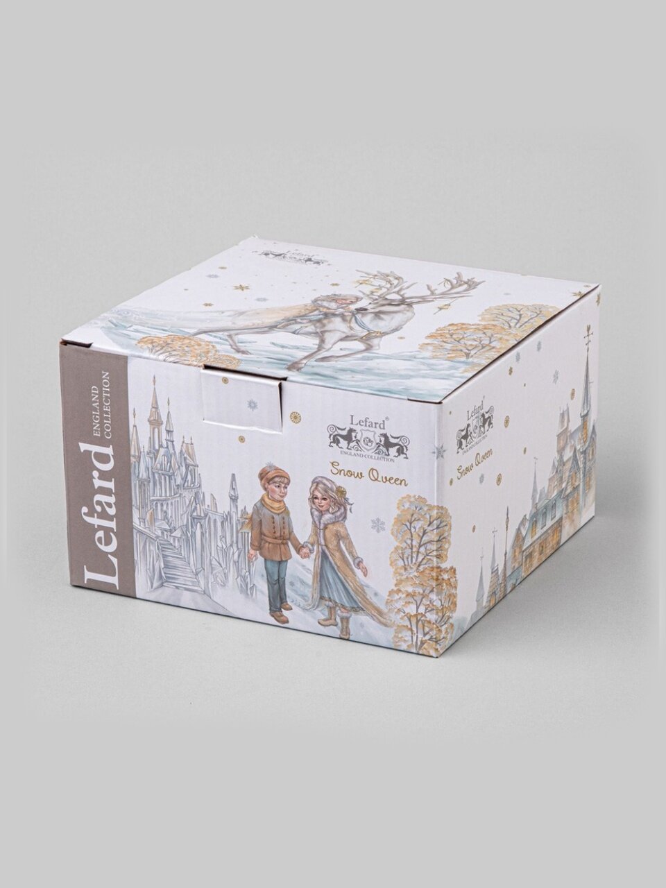 Чайная пара Lefard «Снежная королева» (590-623) — выбор для тех, кто ищет фарфоровую чашку с блюдцем для одного человека, чтобы подчеркнуть атмосферу зимних праздников. Благодаря объёму 300 мл, эта пара подходит как для классического чая, так и для ароматного кофе или какао. Уникальный новогодний декор делает её заметным акцентом в сервировке и отличным подарком на Новый год или Рождество.