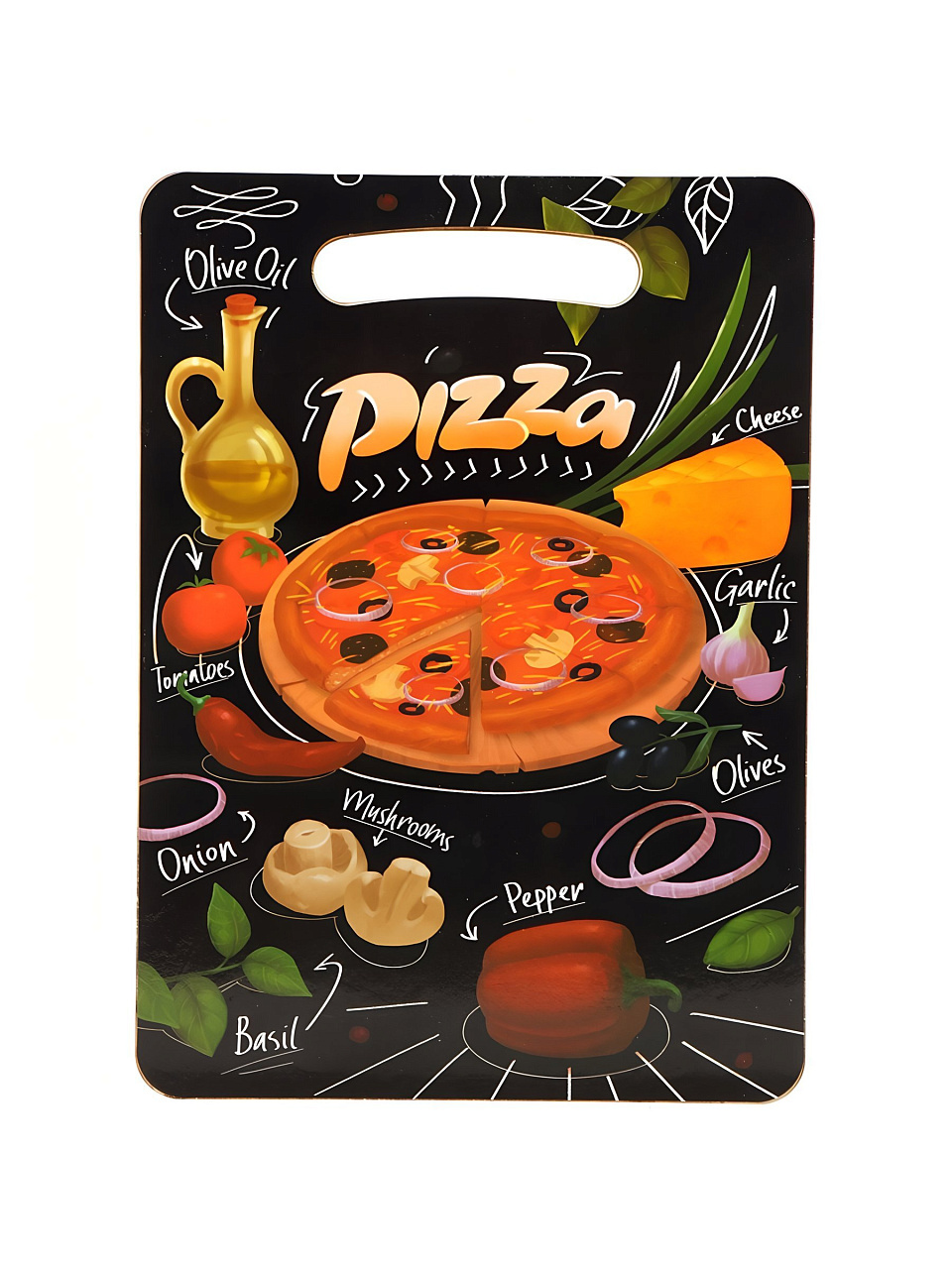Разделочная доска из дерева 29х21 см с удобной ручкой и оригинальным дизайном "Пицца" — стильное и практичное решение для кухни. Идеально подходит для нарезки хлеба, овощей, фруктов и сервировки. Качественное дерево обеспечивает долговечность и безопасность при контакте с продуктами. Подвесная конструкция экономит место на кухне. Яркий внешний вид украсит интерьер и создаст уютную атмосферу. Отличный выбор для ежедневного использования и подарка.