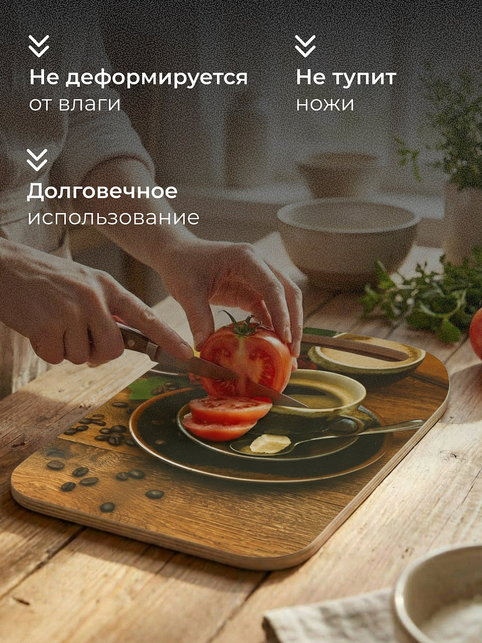 Выгода: стильная разделочная доска из дерева создаст комфорт на кухне и украсит сервировку стола.