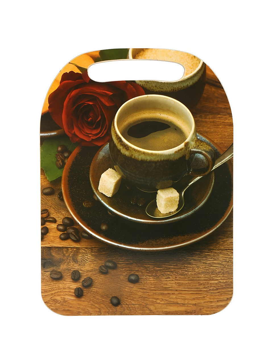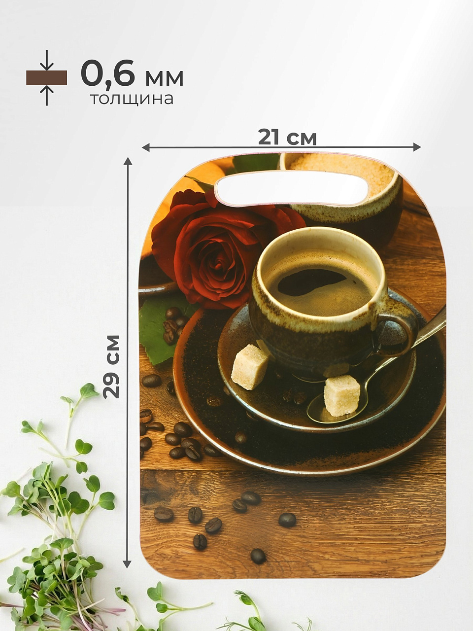 Разделочная доска из дерева с оригинальным дизайном "Кофе" – стильное и практичное решение для кухни. Поверхность удобна для нарезки хлеба, овощей, фруктов и сервировки блюд. Компактные размеры 29х21 см позволяют экономить место, а ручка облегчает перенос и подвешивание. Яркий рисунок добавит уюта интерьеру и подчеркнет индивидуальность пространства.