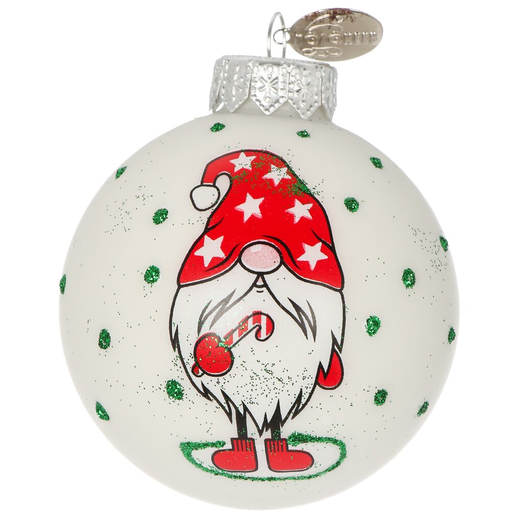 Елочный шар Веселый гном 2, 6.5 см — ручная роспись, стекло премиум-класса, идеальный подарок для уютного Нового года и стильного оформления дома.