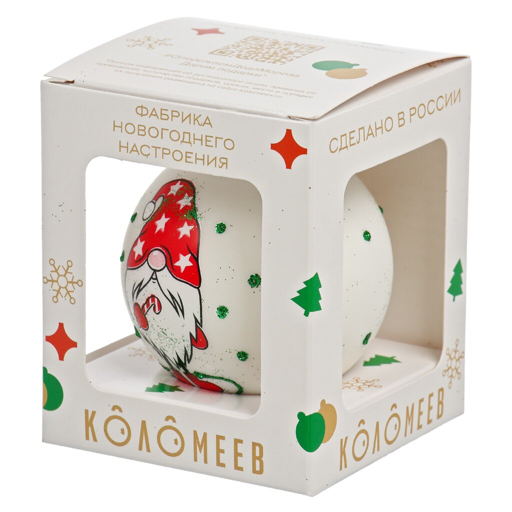 - Эксклюзивная ручная роспись — каждый шар уникален, с ярким рисунком гнома.