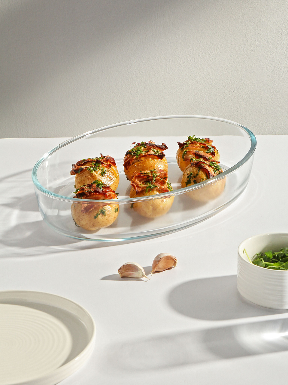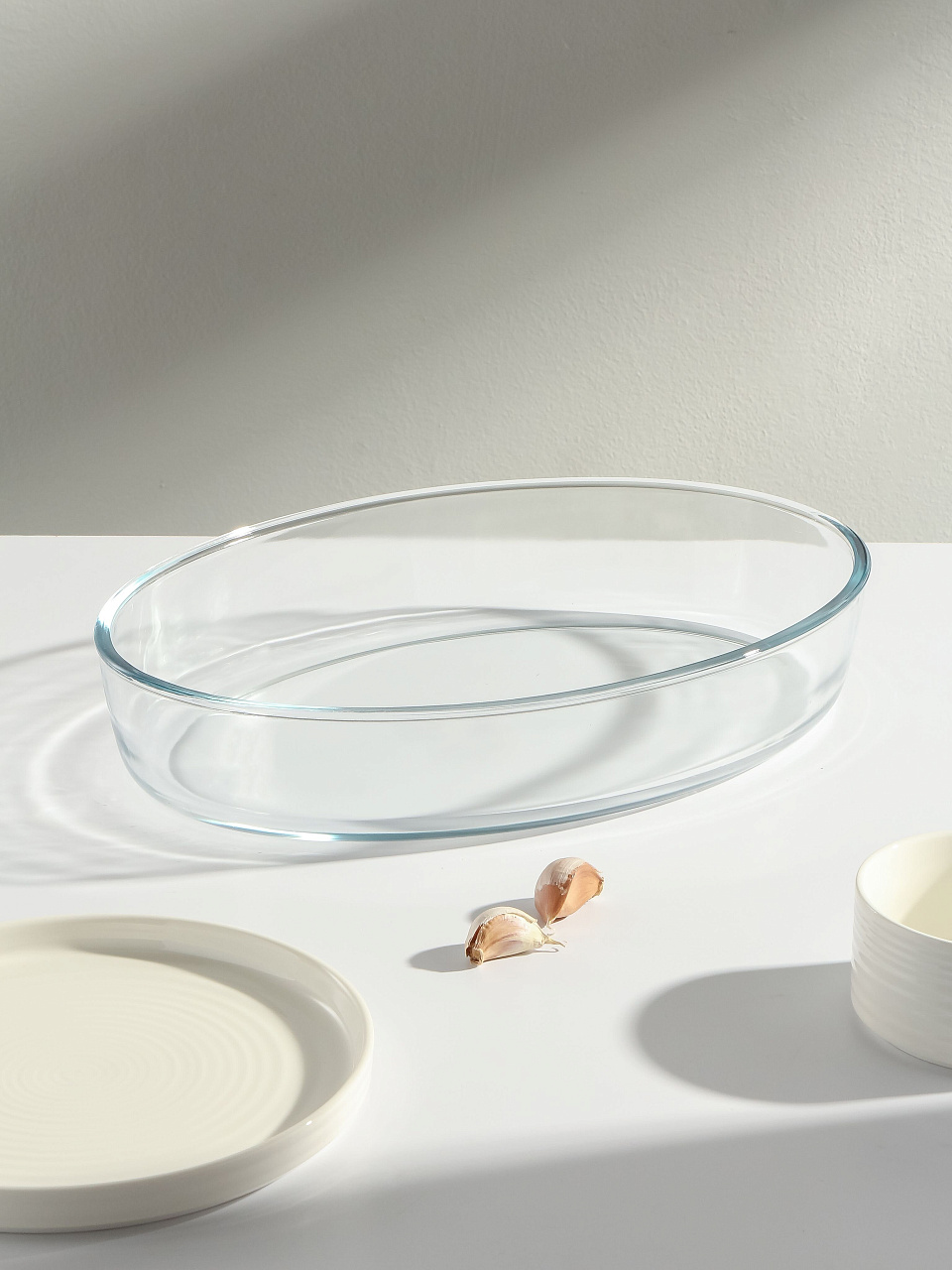 Овальная стеклянная форма для запекания Daniks 3,2 л: удобно готовить курицу, рыбу и пироги для всей семьи. Безопасно для духовки, СВЧ и посудомойки.
