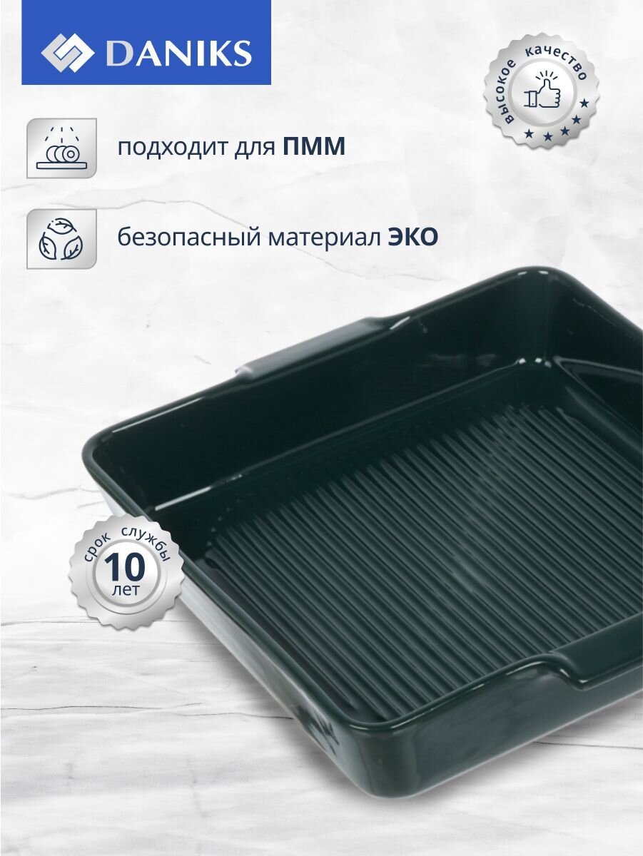 Керамическая форма для выпечки Daniks Эмеральд 1,5 л: идеальный выбор для пирогов, курицы и рыбы. Жаропрочная, стильная, подходит для СВЧ и посудомойки.