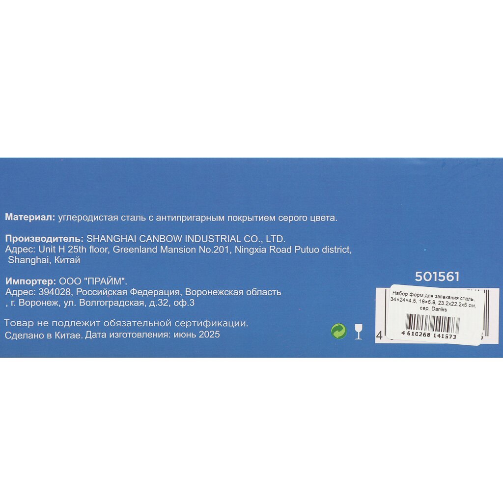 Набор форм для запекания сталь, 34×24×4.5, 18×6.8, 23.2х22.2х5 см, сер, Daniks