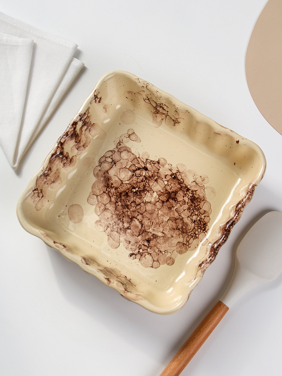 Многие спрашивают, подходит ли эта форма для пирогов, мяса или овощей? Да, универсальный объём и размеры позволяют готовить разнообразные блюда: от запечённой курицы до домашних лазаний. В отличие от металлических аналогов, керамика не придаёт блюдам постороннего вкуса, а благодаря ручной глазури «Паутинка» форма смотрится эффектно на столе. Для подарка или частого использования — это практичное решение без лишних затрат.
