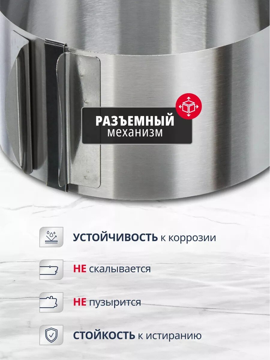 Форма для запекания из нержавеющей стали диаметром 16-30 см — это надежный выбор для тех, кто ищет универсальную посуду для выпечки. Благодаря разъемной конструкции, вы легко достанете бисквит, чизкейк или пиццу без риска повредить выпечку. Сталь не впитывает запахи, не поддается коррозии, а отсутствие антипригарного покрытия делает изделие безопасным для частого использования.