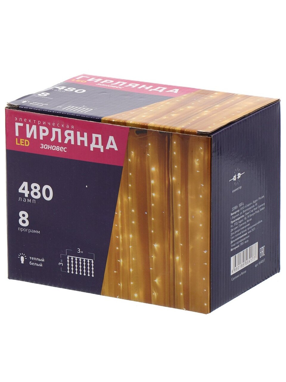 Вы можете приобрести «Гирлянда 480 ламп, 3х3 м, 8 режимов, Занавес, теплый белый свет, прозрачная, в помещении, сетевая, LED» и другие товары в нашем интернет-магазине в Старом Осколе по низким ценам и с бесплатным самовывозом.