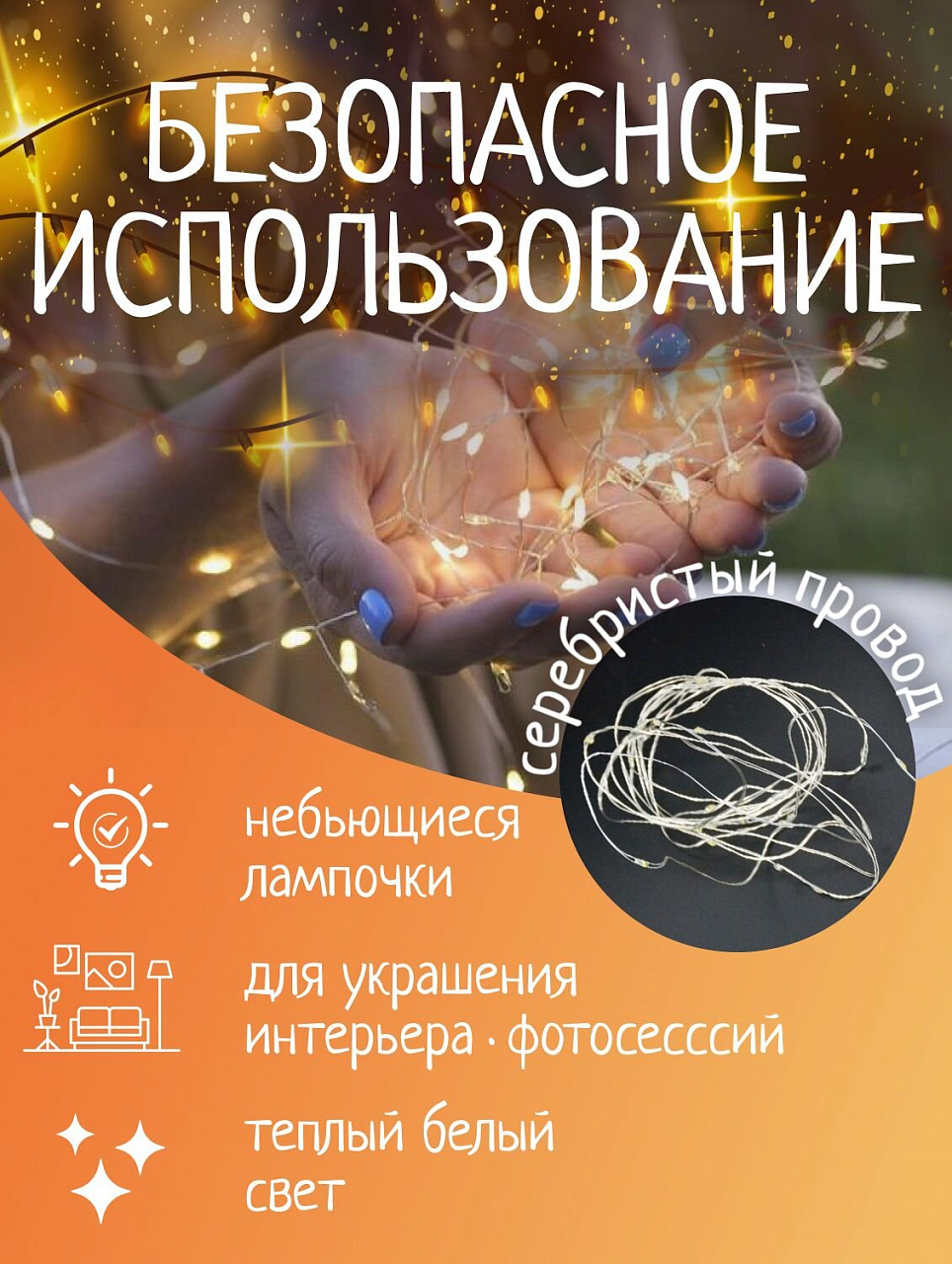 Вы можете приобрести «Гирлянда 50 ламп, 5 м, 1 режим, теплый белый свет, серебристая, в помещении, на батарейках, LED, SYDB-041908-5W» и другие товары в нашем интернет-магазине в Старом Осколе по низким ценам и с бесплатным самовывозом.