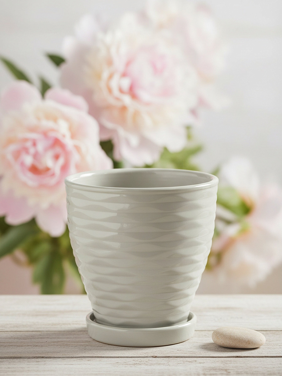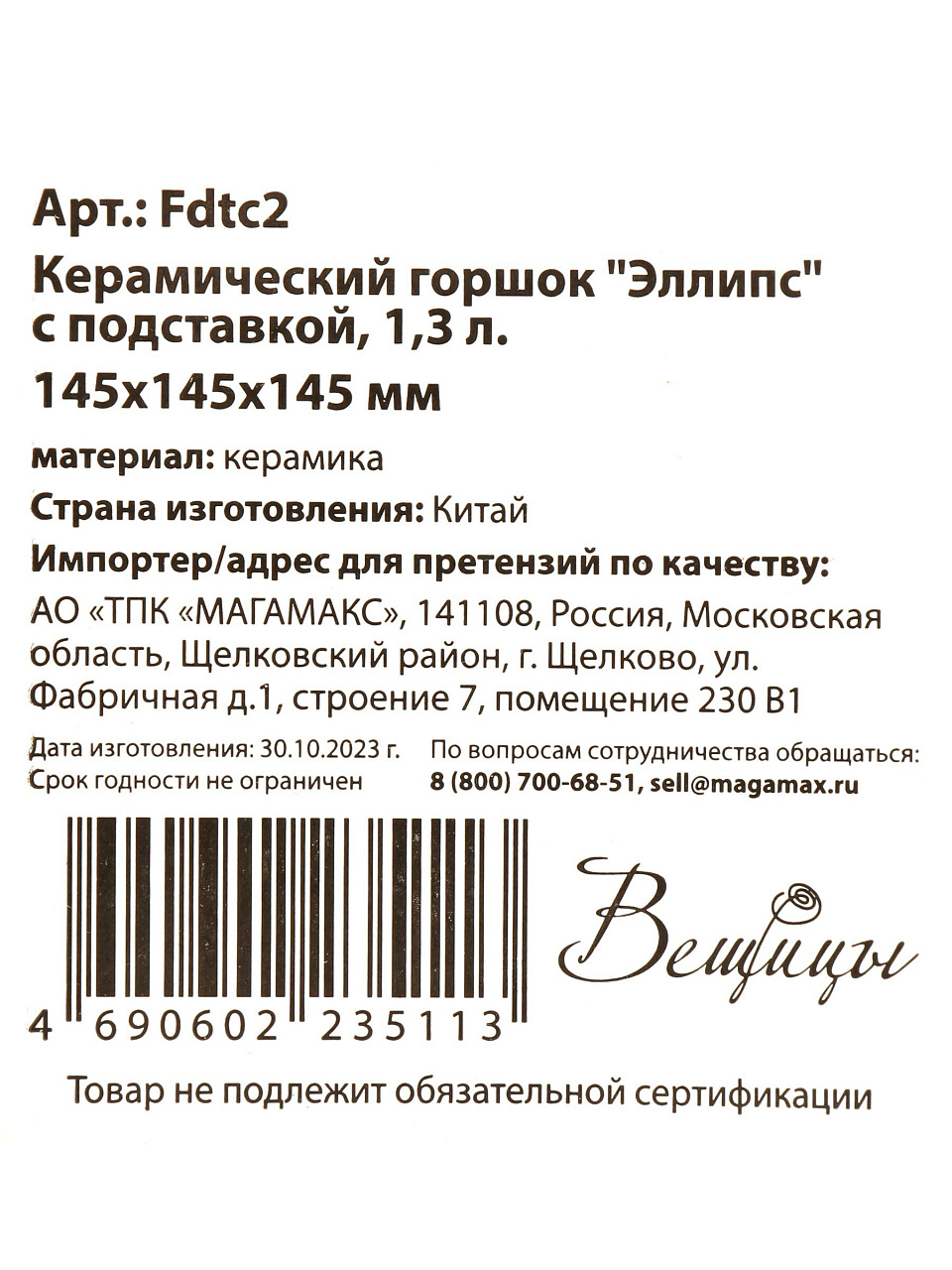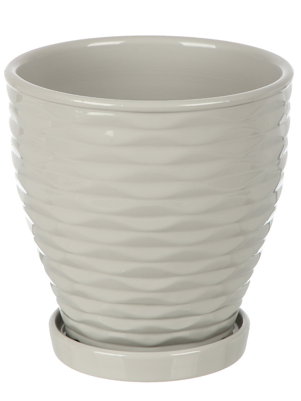 Горшок керамика, 1.3 л, 14.5х14.5х14.5 см, с подставкой, серый, Эллипс, Fdtc2