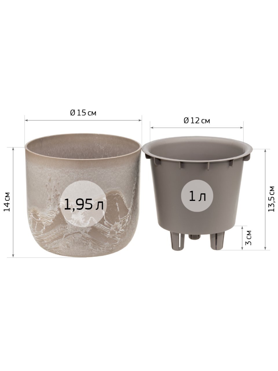 Кашпо пластиковое 1 л со вставкой, бежевый слайн — компактное решение для дома и офиса: стиль, удобство и универсальность по доступной цене.