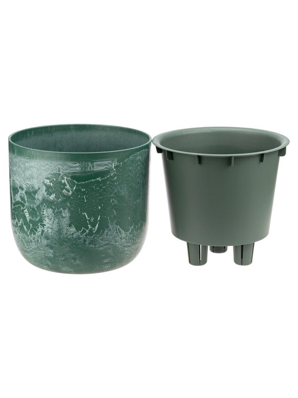 Кашпо пластик, 1 л, 15х15х14 см, универсальное, со вставкой, зеленый слайн, Idea, Микрит, М 3264