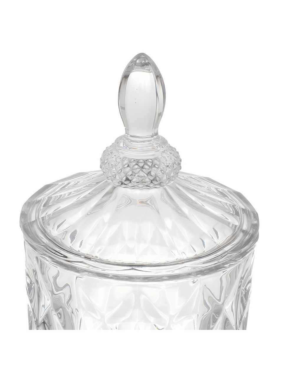 Объём — 3 литра, материал — прозрачное стекло с декоративной отделкой, крышка в комплекте.