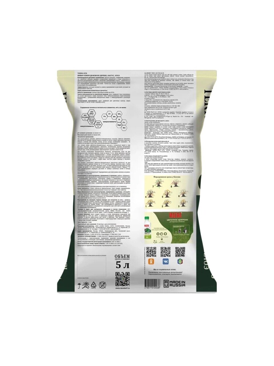 Откройте для себя идеальный грунт для ваших растений! Грунт "Денежное дерево-Кактус-Алоэ" от бренда Terra Vita создан для истинных любителей зелени. Его уникальный состав из торфа и биогумуса обеспечит вашим растениям здоровый рост и обильное цветение круглый год. Универсальный объем 5 литров подходит для посадки и обогащения почвы, повышая урожайность.