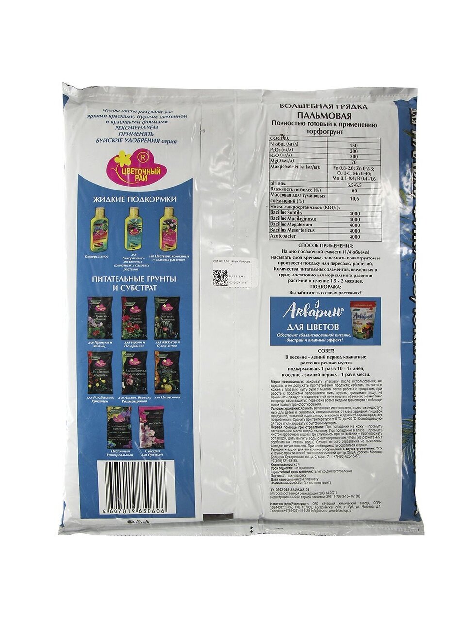 Ищете идеальный грунт для ваших растений? Грунт "Цветочный рай" от Буйского химического завода станет отличным выбором для ухода за пальмами, фикусами, юкками и драценами. Этот грунт создан для обеспечения оптимального роста и здоровья растений в любое время года.