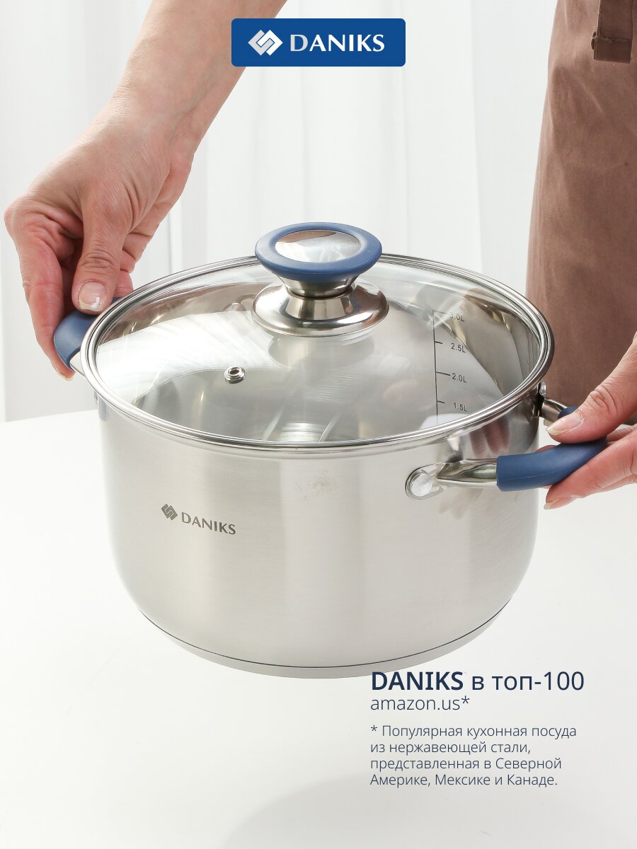 Кастрюля Daniks Сиена 3.9 л из нержавеющей стали: идеальный выбор для индукционных плит, долговечность и универсальность для современной кухни.