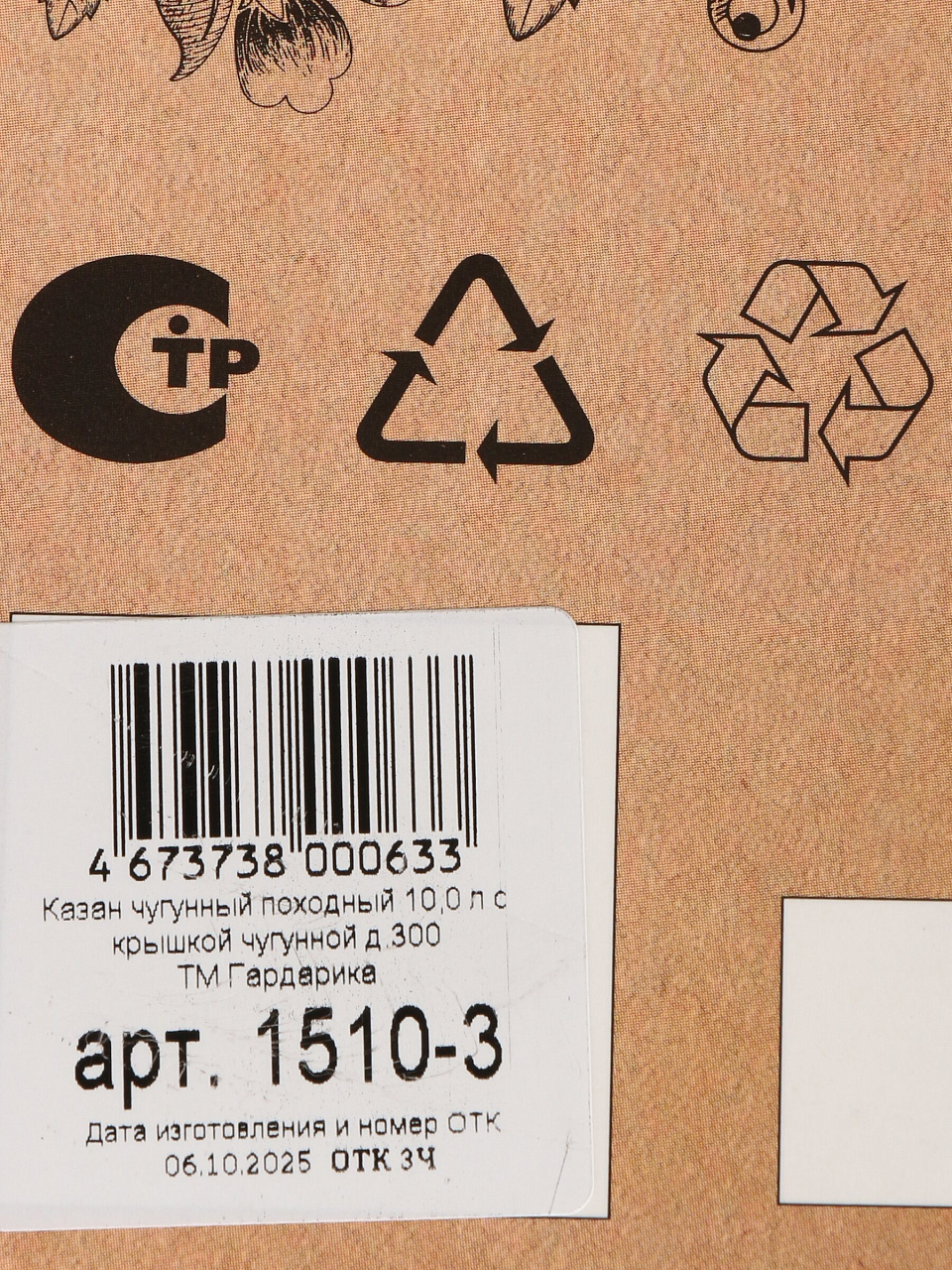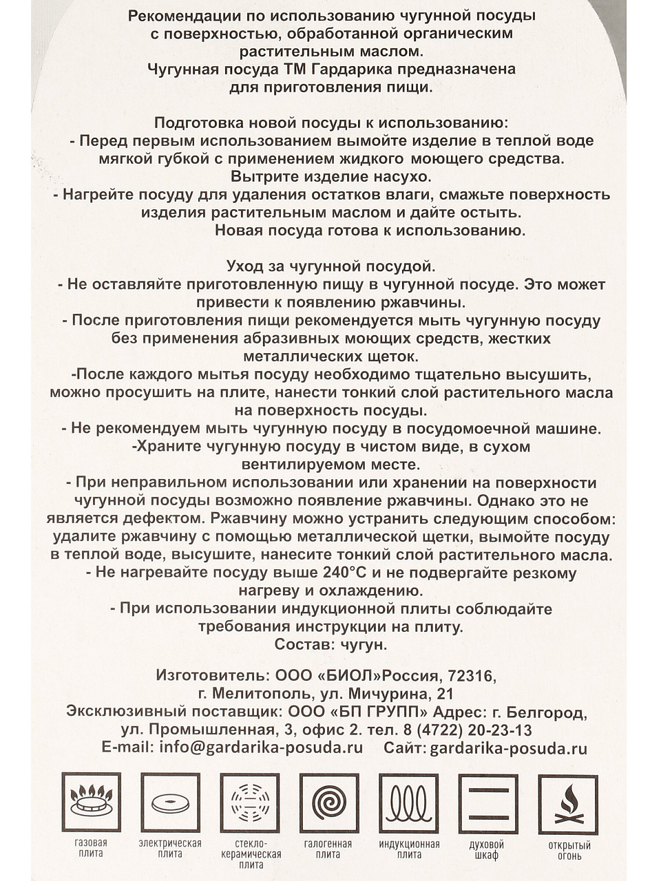 Казан чугун, 10 л, с крышкой, крышка чугун, с дужкой, Гардарика, 1510-3