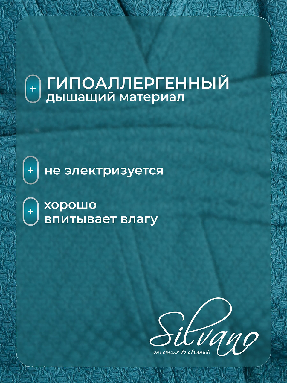 Многие спрашивают: «Какой халат лучше выбрать для дачи или после душа?» Вафельный халат Silvano быстро сохнет, не мнется, легко стирается и сохраняет яркость изумрудного цвета. В отличие от махровых аналогов, он легче и компактнее — удобно брать с собой в поездки. Без капюшона, на поясе, без рисунка — лаконичный стиль подходит для любого возраста и пола. Размер М (48-50) рассчитан на средние параметры, что часто спрашивают в чат-ботах: «Как выбрать размер халата?» — ориентируйтесь на привычную одежду, халат свободного кроя.