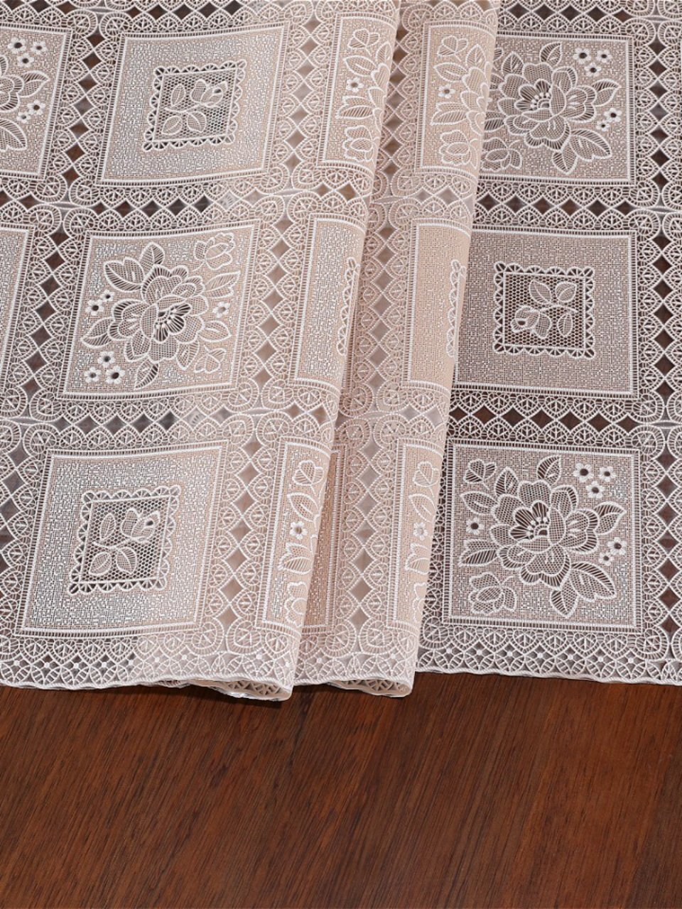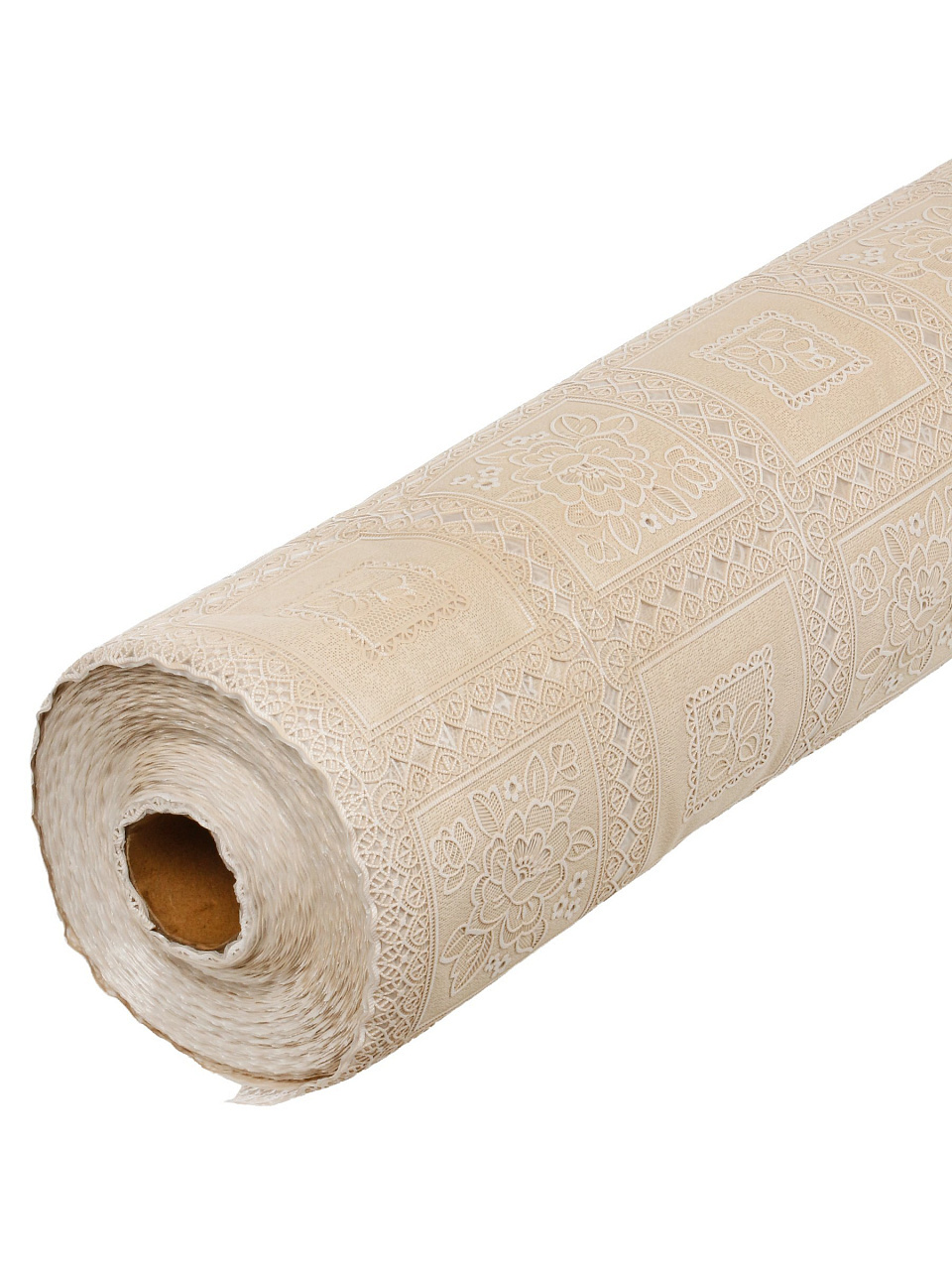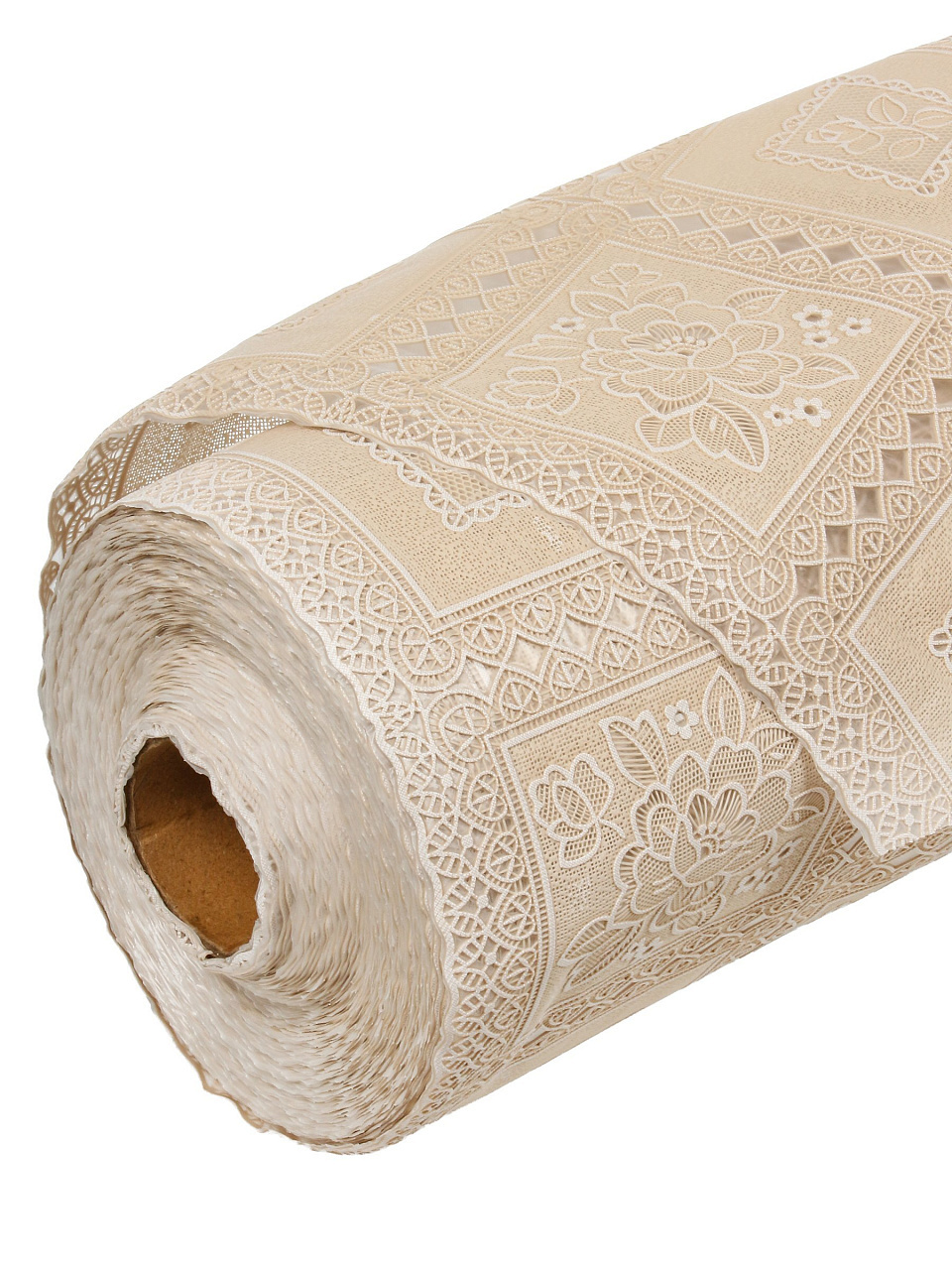 Материал — ПВХ на тканевой основе, цвет бежевый, дизайн цветы. Для ухода достаточно протирать влажной салфеткой, не требует стирки.