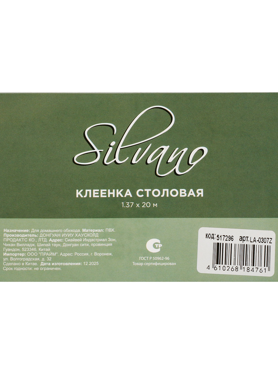 Закажите клеенку Silvano по выгодной цене — получите надежную защиту стола, стильный декор и удобство в уходе. Доставка по РФ, гарантия соответствия характеристикам.