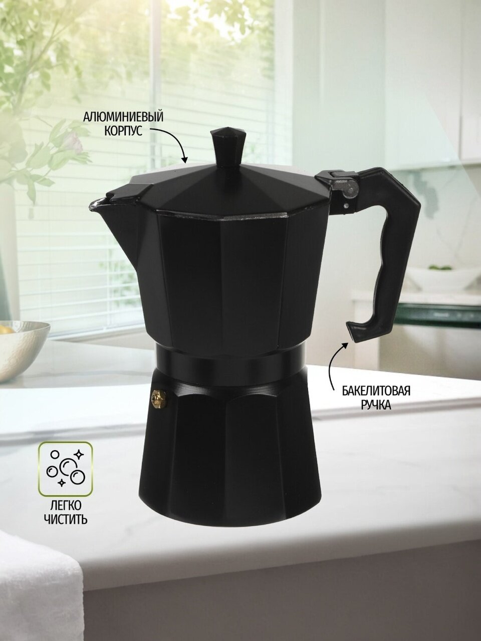 Для приготовления настоящего кофе, крепкого, ароматного, с терпким вкусом, подойдет гейзерная кофеварка на 0,3 л, чтобы вы могли за один раз сварить три-четыре порции любимого напитка. Напиток заваривается путем прохождения горячей воды через молотый кофе.