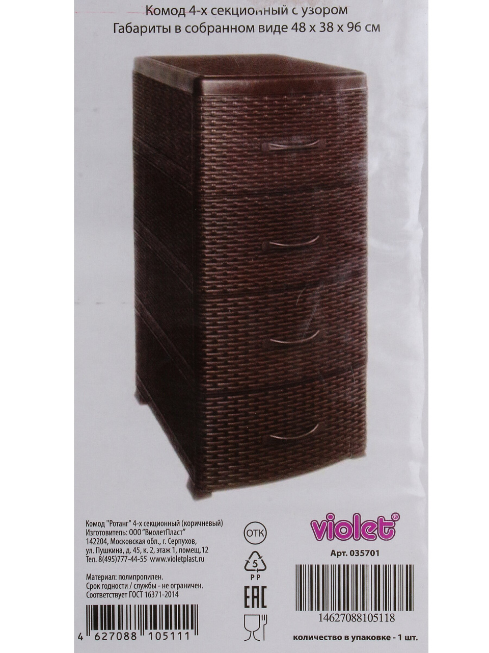 Вы можете приобрести «Комод 4 ящика, Ротанг, 38х48х96 см, коричневый, 35 701, Violet» и другие товары в нашем интернет-магазине в Казани по низким ценам и с бесплатным самовывозом.