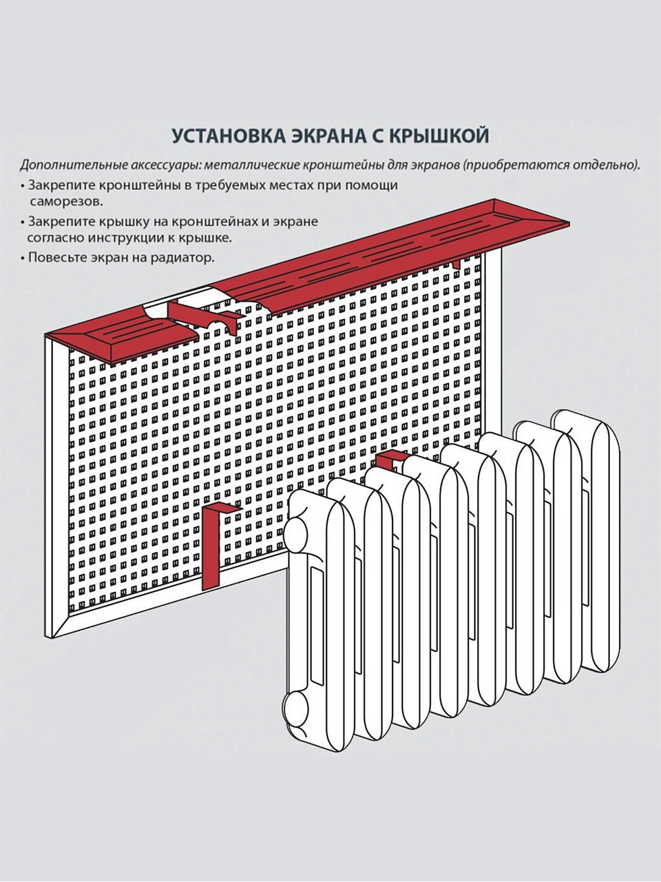 Крышка для экрана радиатора служит важной функциональной и эстетической цели. Она не только защищает радиатор от пыли и загрязнений, но и помогает регулировать теплоотдачу, направляя потоки тёплого воздуха в помещение. Благодаря своей конструкции крышка способствует более равномерному распределению тепла, что особенно актуально в холодное время года.