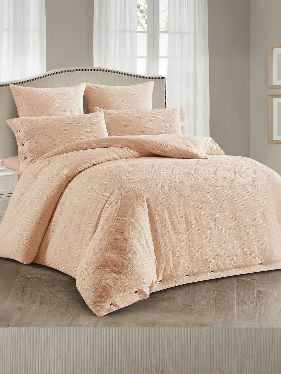Премиальное постельное белье Cleo Organic Cotton: вареный хлопок, евро-комплект 6 предметов, простыня на резинке 180х200 см, универсальный бежевый — для идеального сна и стильного интерьера.