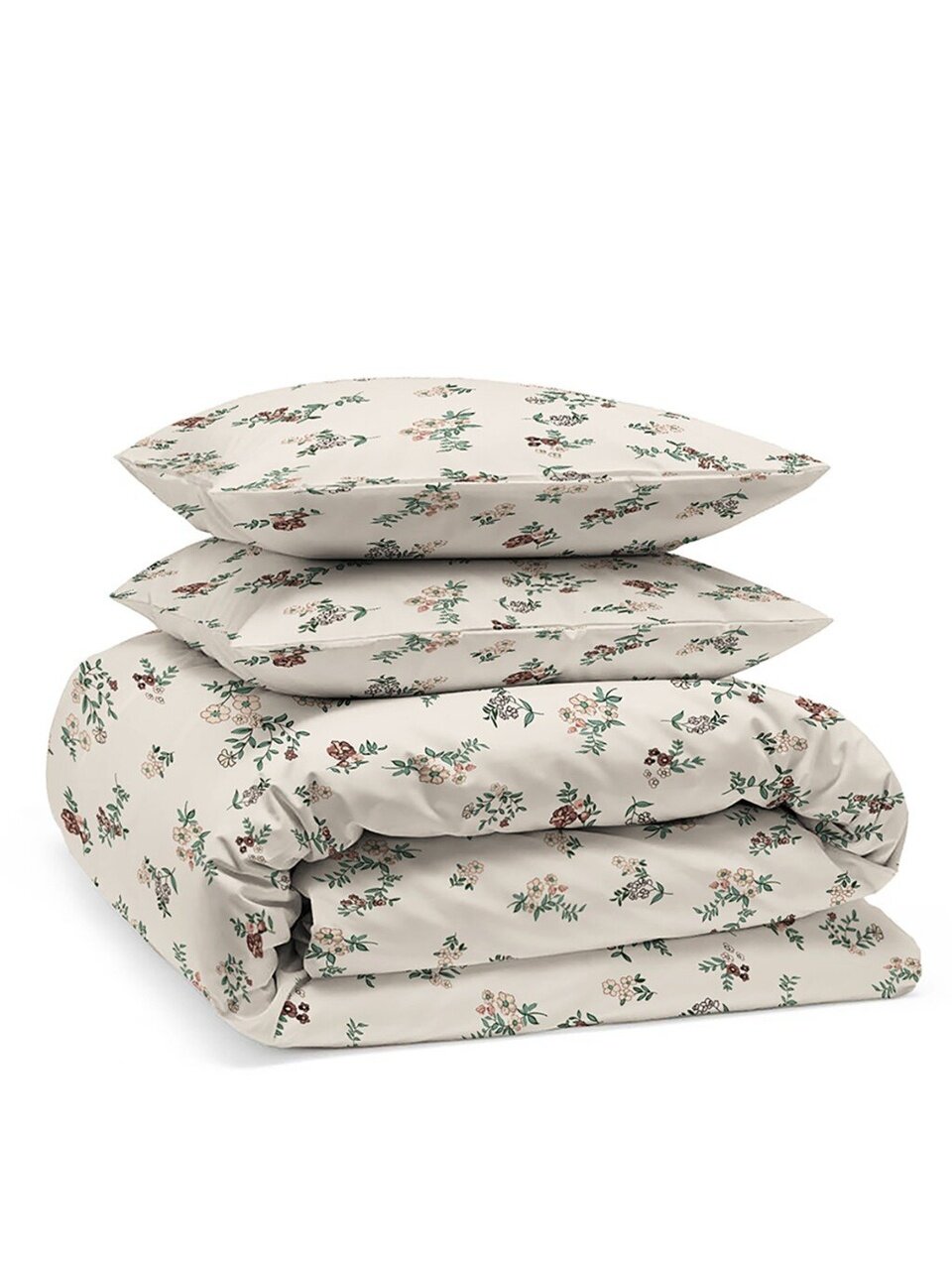 Комплект выполнен из поплина (100% хлопок), рекомендуется машинная стирка при 40 градусах для сохранения цвета и структуры ткани.