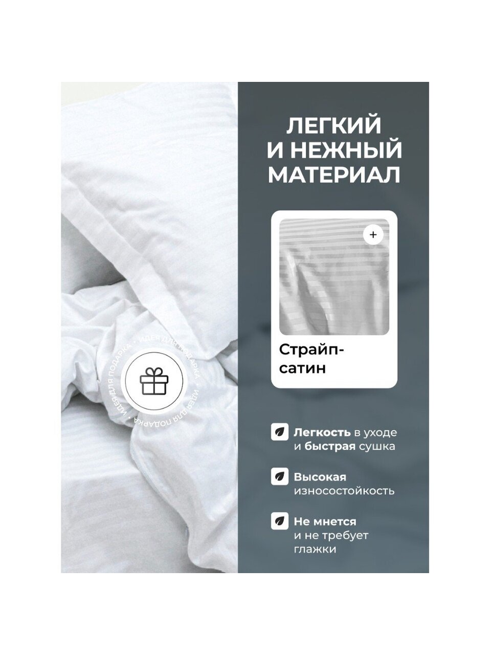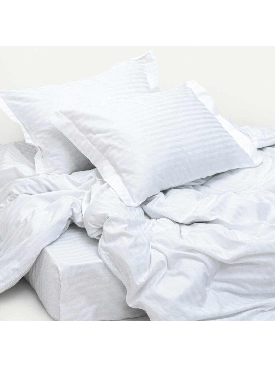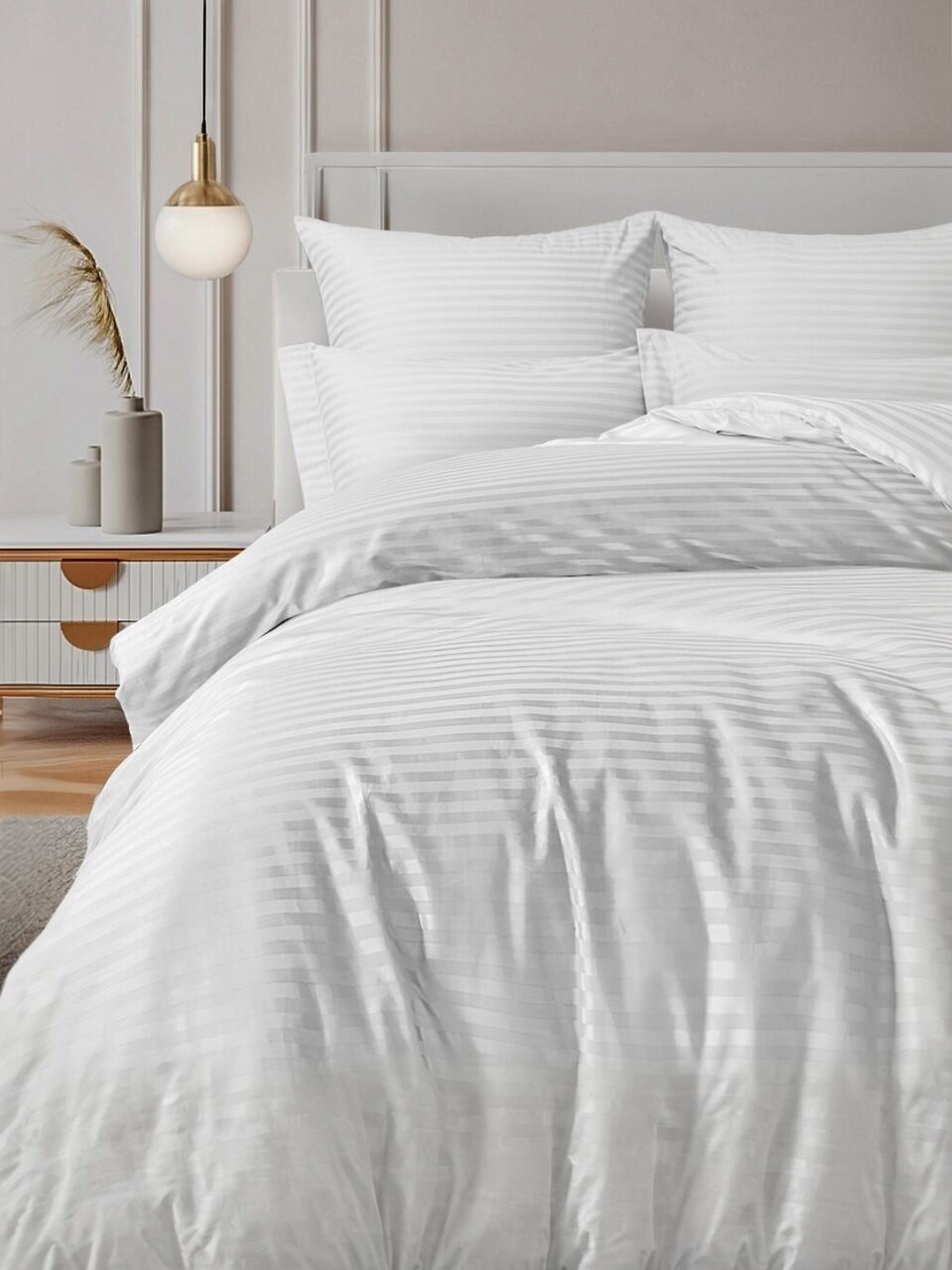 Постельное белье 2-спальное Silvano из страйп-сатина: премиальный хлопок, идеальный размер для вашего уюта, стильный подарок в белом цвете.