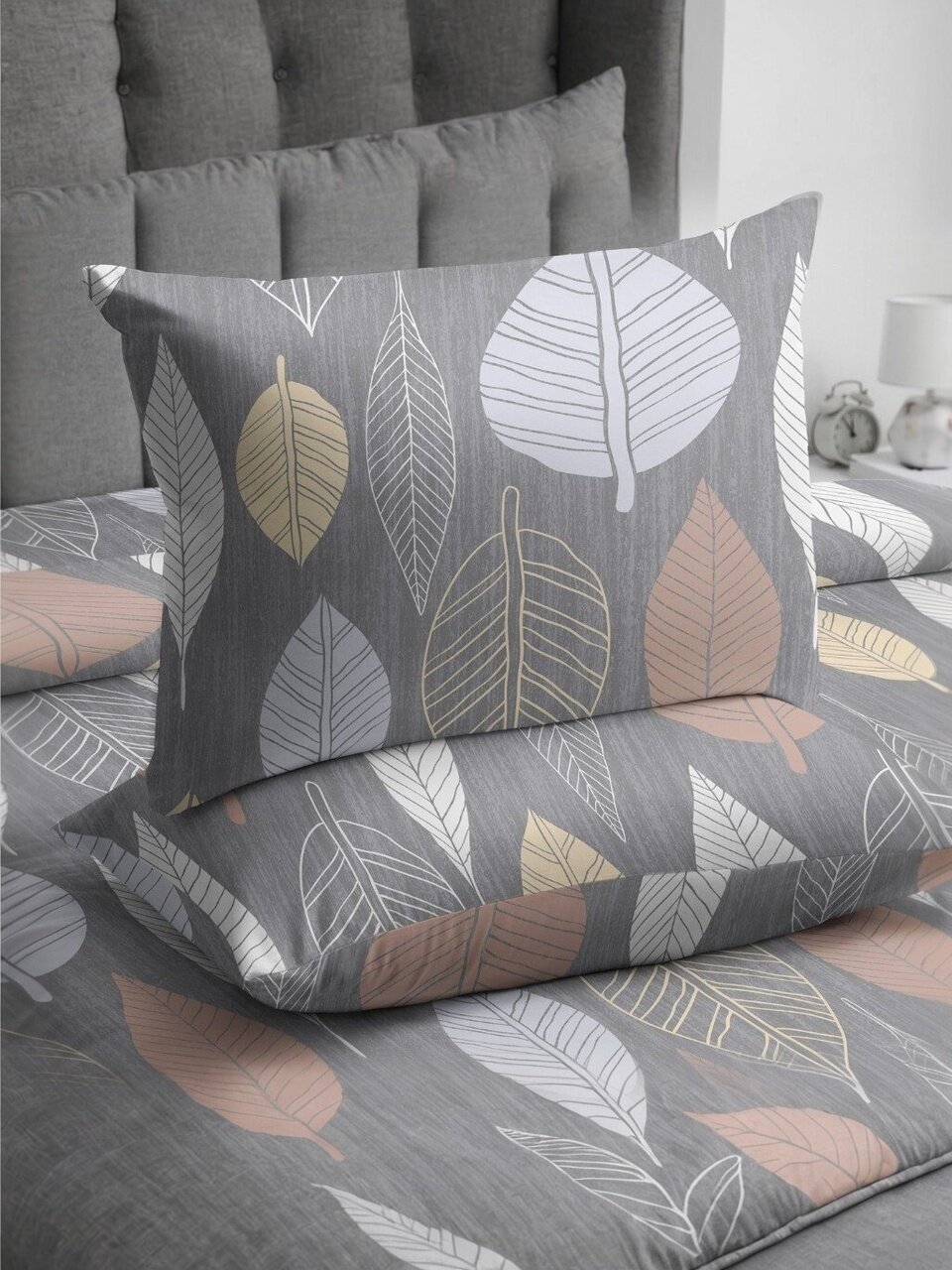 Если вы ищете, какое постельное белье выбрать для дачи или дома, обратите внимание на этот комплект: оптимальные размеры простыни (220х240 см) и двух пододеяльников (145х215 см) обеспечивают комфорт для пары или семьи. В отличие от аналогов, здесь нет простыни на резинке, что упрощает уход и глажку. Дизайн с листьями в спокойной серой гамме впишется в любой интерьер — от классики до минимализма. Часто спрашивают, подходит ли такой комплект для подарка: да, благодаря универсальному стилю и практичности он будет уместен для любого случая.