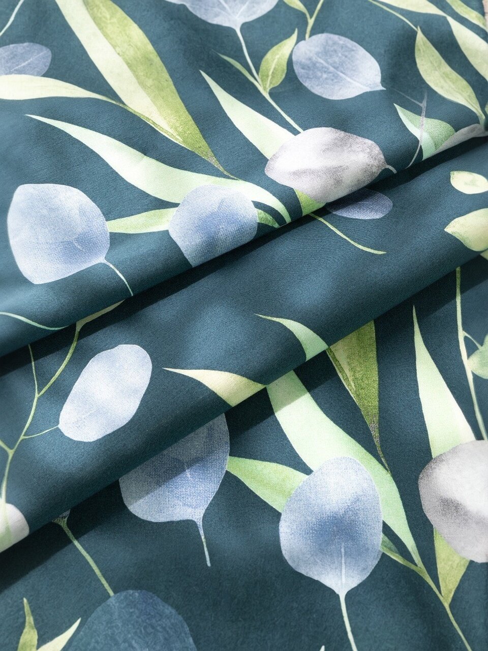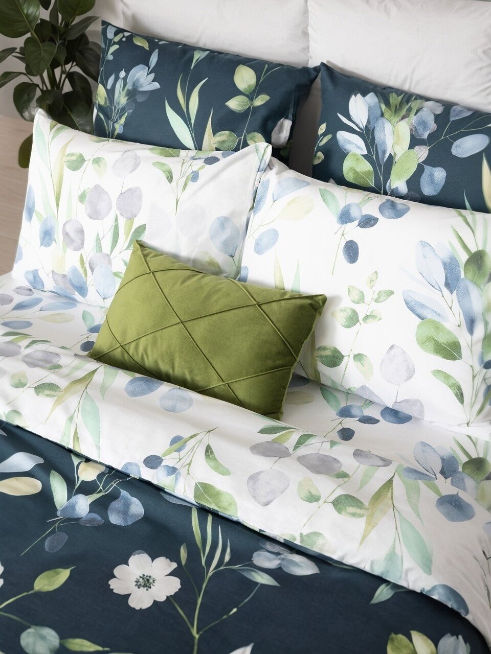 Комплект евро Rainy Garden включает простыню 220х240 см, пододеяльник 200х220 см и две наволочки 70х70 см — оптимально для кроватей шириной от 160 см. Простыня не на резинке, что удобно для матрасов разной высоты.