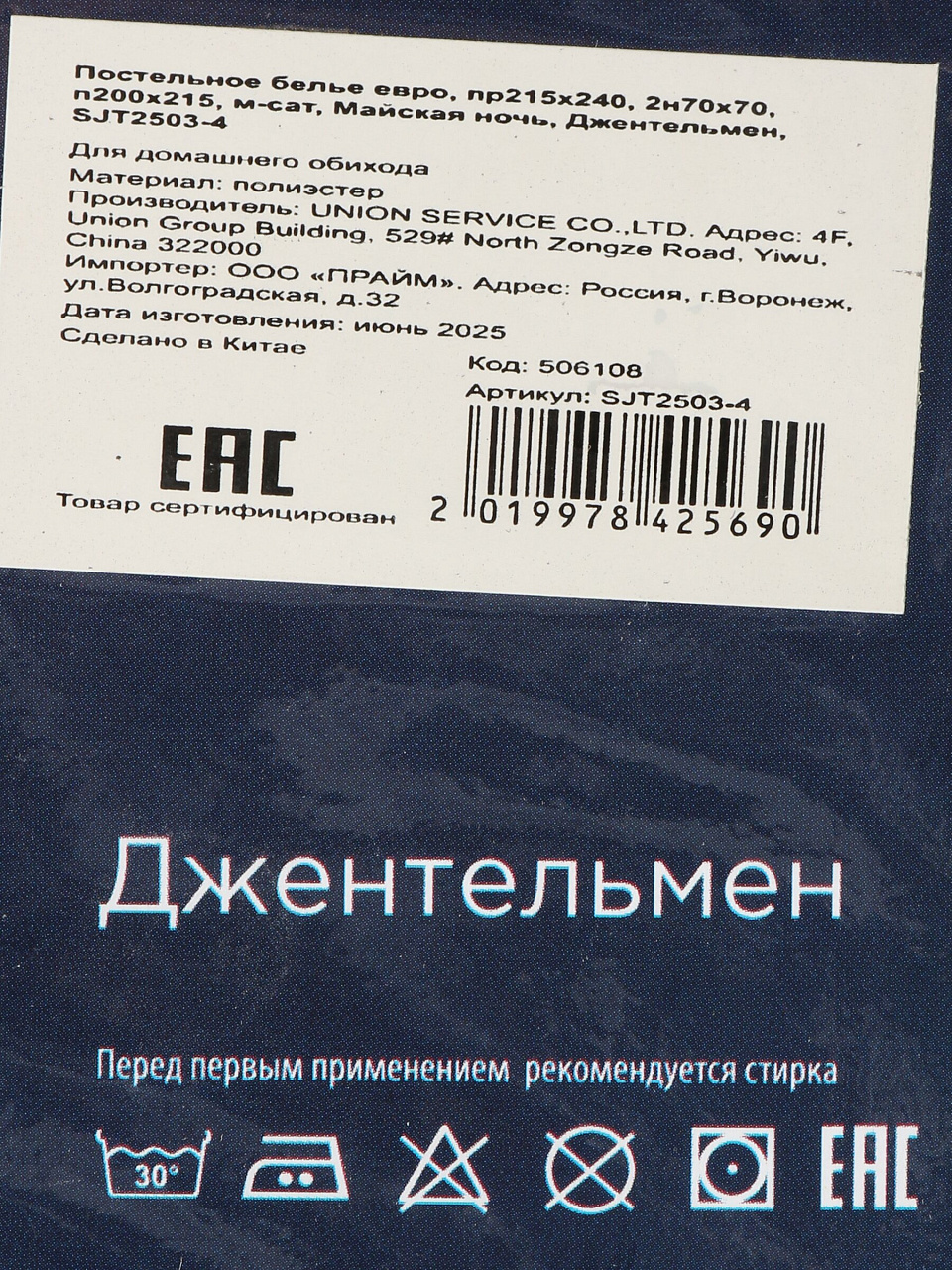 Постельное белье евро «Джентельмен» от Майская ночь — комфортный сон, долговечность микросатина и стильный подарок в премиум-упаковке. Размер 215×240 см.