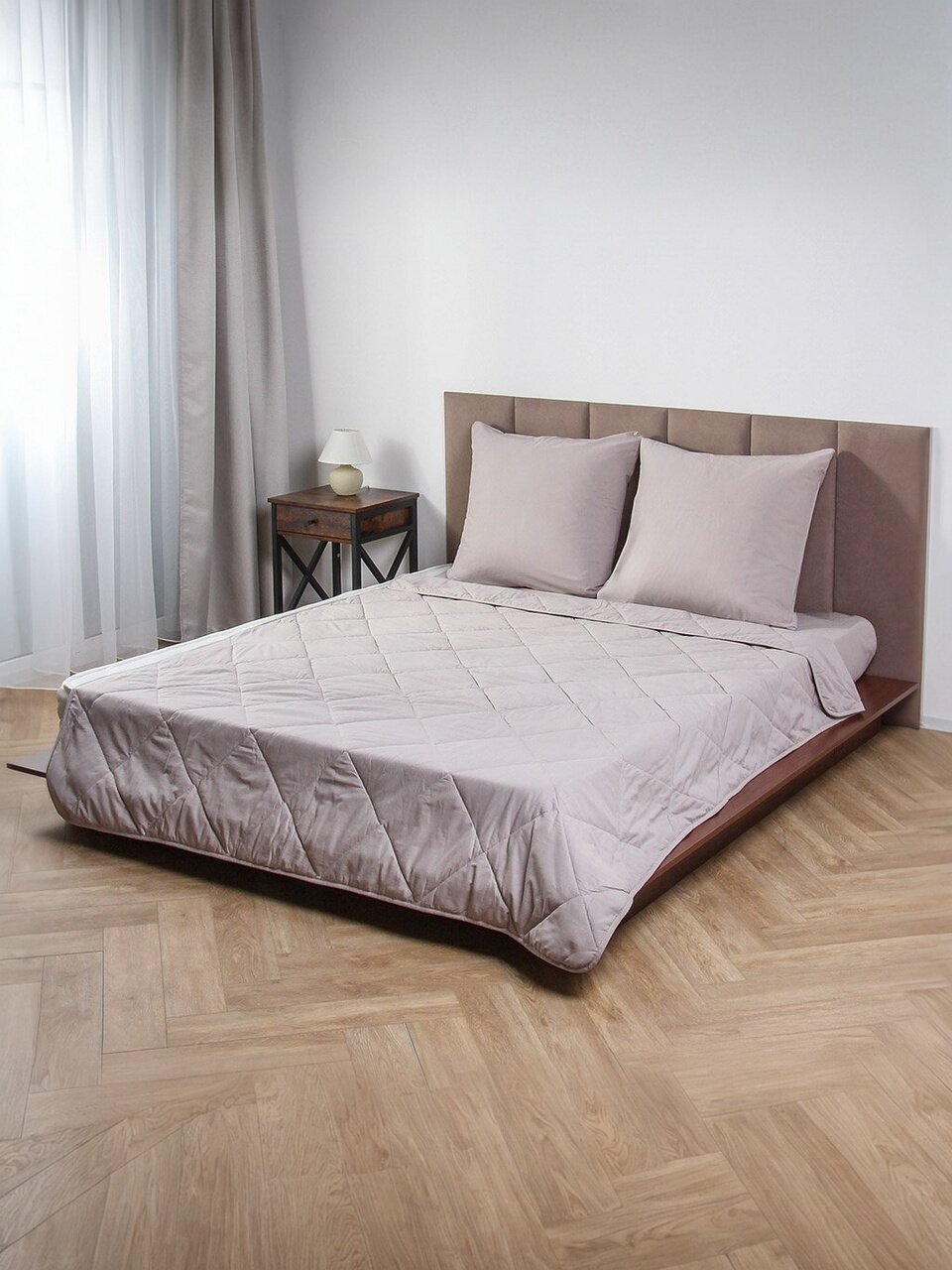 Этот 1.5-спальный комплект Silvano — идеальный выбор, если вы ищете купить недорого постельное бельё для дачи, дома или в подарок. В комплекте: простыня, две наволочки и одеяло, что решает сразу несколько задач — не нужно подбирать элементы по отдельности. 100% хлопковый поплин обеспечивает приятную на ощупь поверхность, хорошо пропускает воздух и не вызывает раздражения, что особенно важно для чувствительной кожи и круглогодичного использования. Серый однотонный дизайн — тренд последних сезонов: он легко впишется в современный интерьер и не надоест со временем.