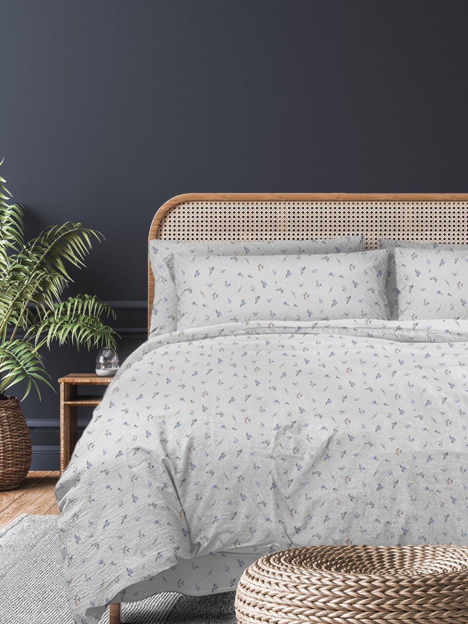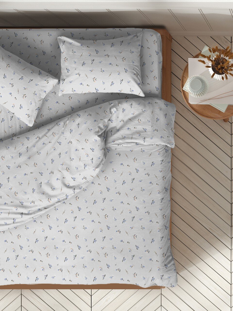Постельное белье 1.5-спальное Silvano 20463 из поплина: свежий серый дизайн с цветами, 100% хлопок, 2 наволочки 50х70, идеальный подарок и комфорт для сна.