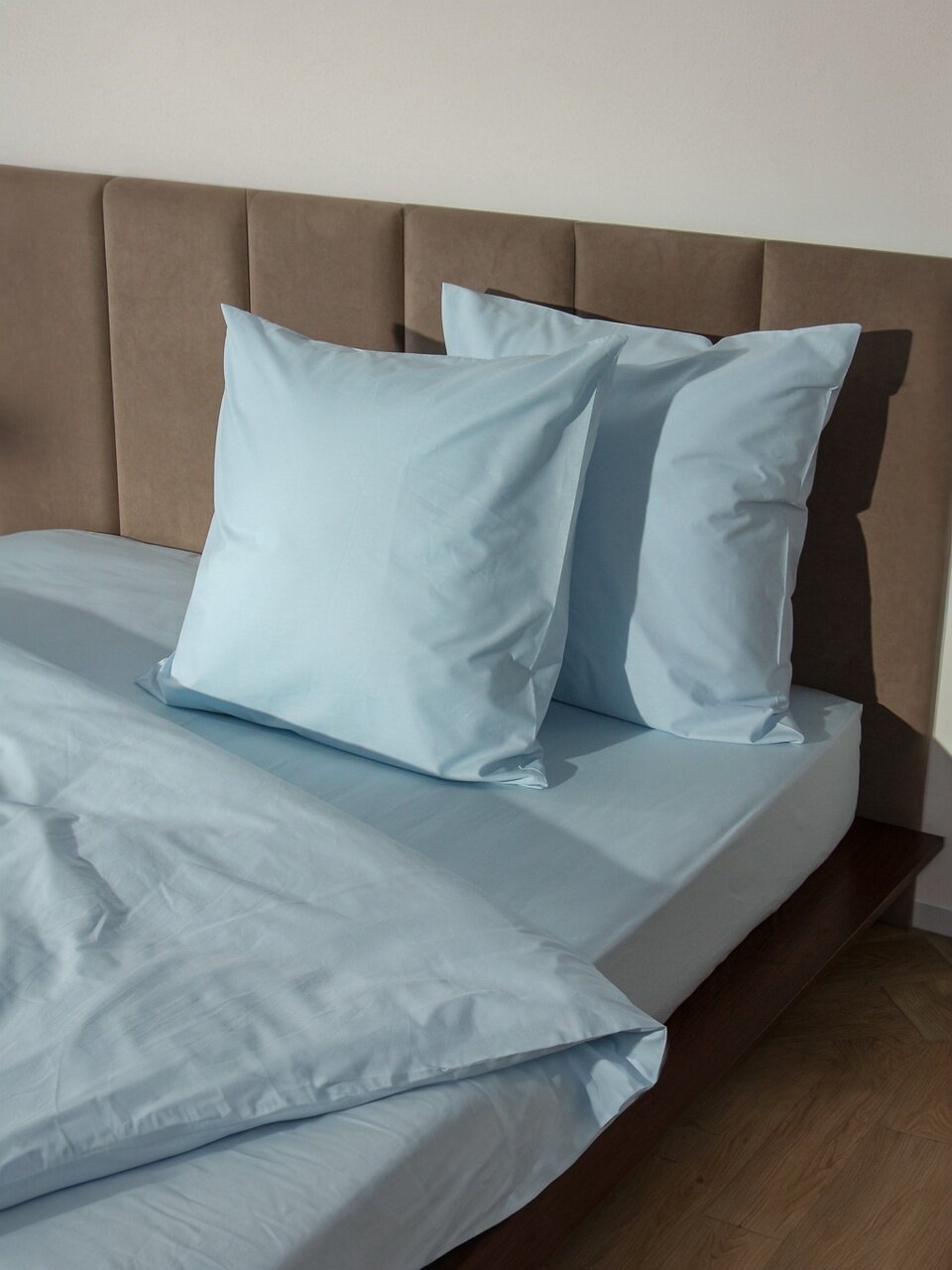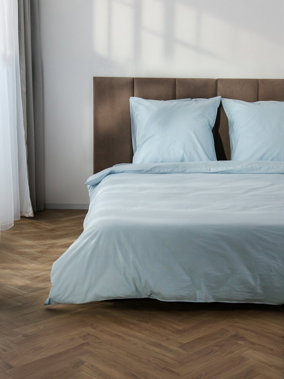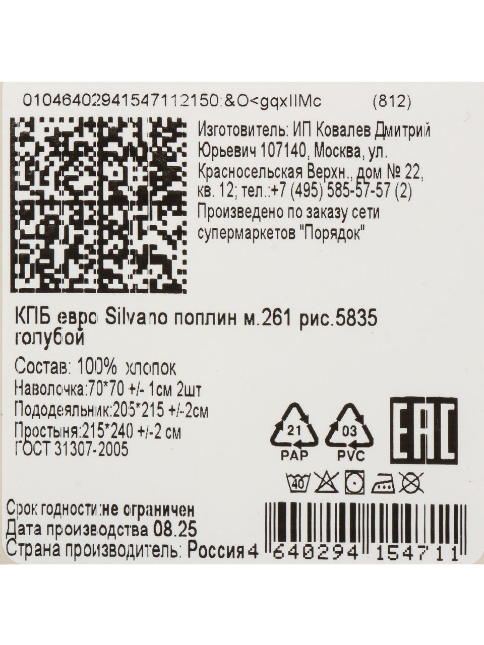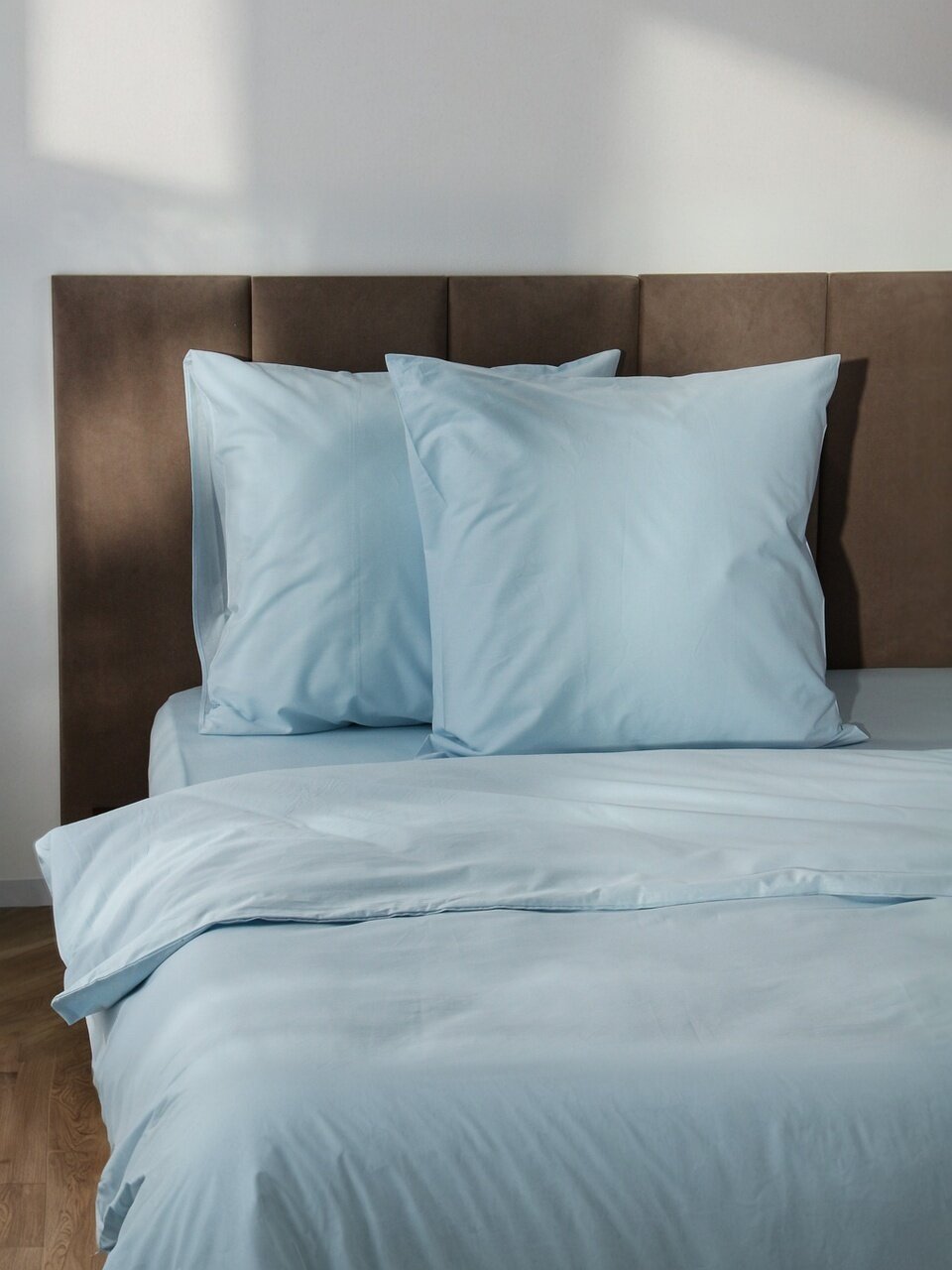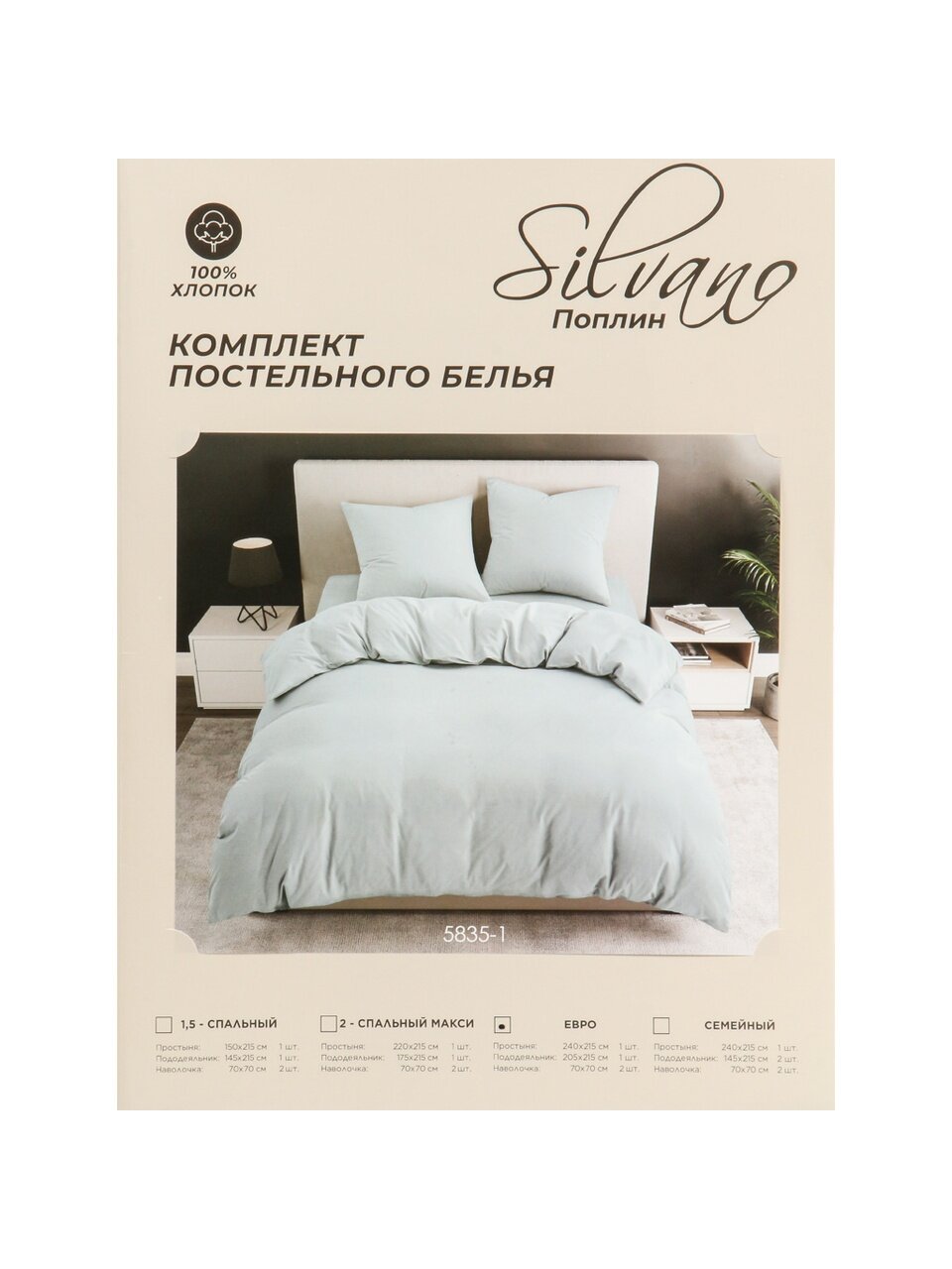 Постельное белье Silvano евро 5835: натуральный хлопок-поплин, голубой цвет, 4 предмета — идеальный выбор для комфортного сна и стильного интерьера.