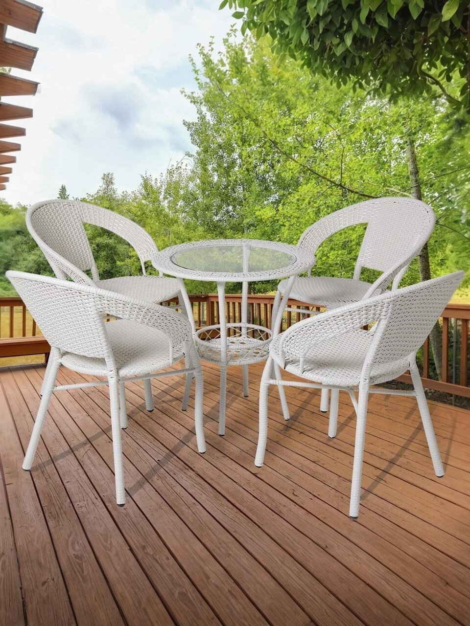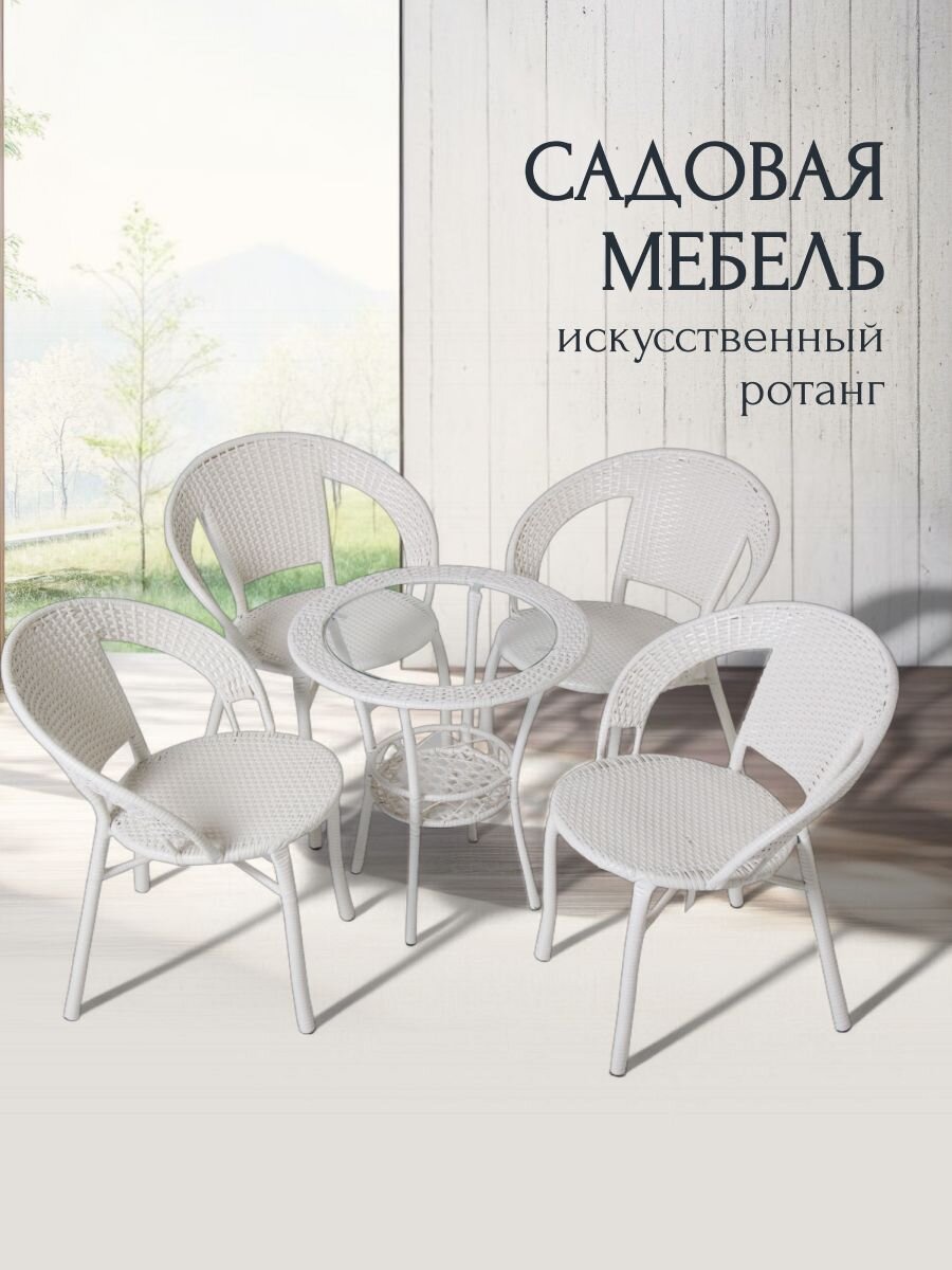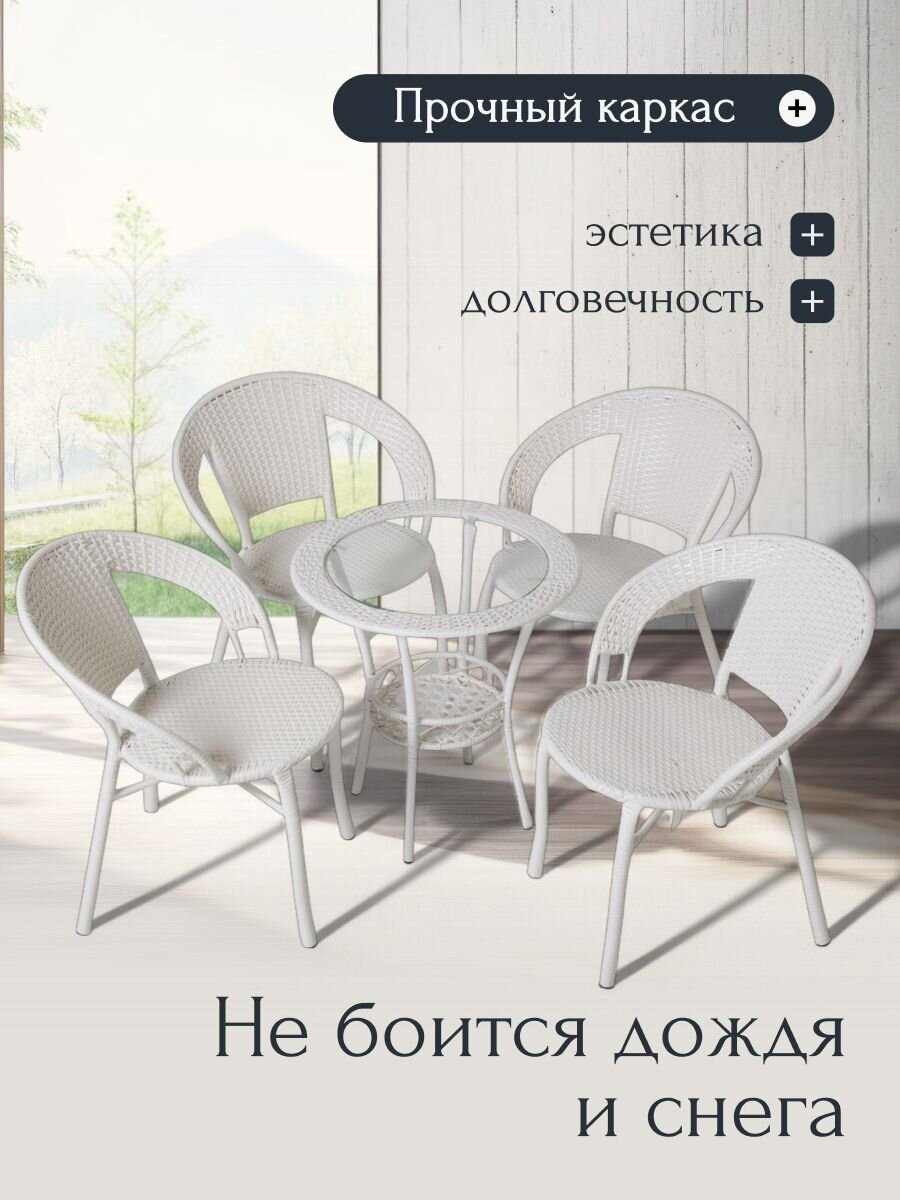 Превратите ваш сад или дачный участок в уютное место для отдыха с мебельным набором "Лаверна". Этот стильный комплект, состоящий из стола(55х55х60 см) и четырех стульев(55х52х70 см), станет идеальным решением как для семейных обедов на свежем воздухе, так и для дружеских посиделок. Благодаря своему современному дизайну и универсальному белому цвету, он гармонично впишется в любой экстерьер.