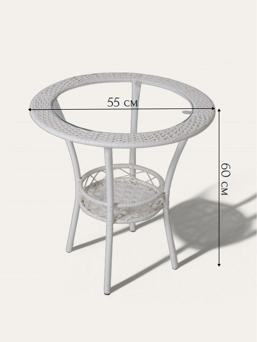 Комплект "Лаверна" состоит из стола и четырех стульев и изготовлен с учетом всех требований к качеству и надежности. Плетеная структура и прочный каркас обеспечивают устойчивость и долговечность, что позволяет использовать мебель в любых погодных условиях. Стол с круглой столешницей диаметром 55 см и высотой 60 см идеально подходит для небольших пространств, предоставляя достаточно места для комфортного размещения четырех персон.