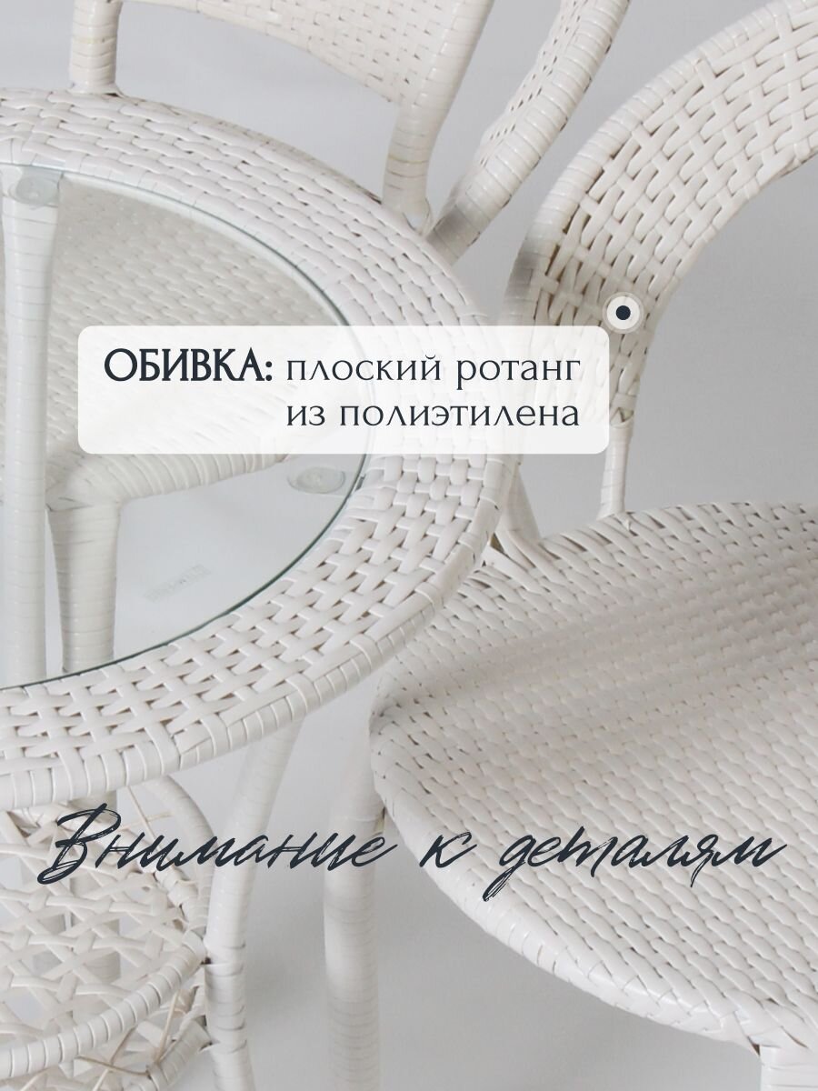 Каждый элемент набора "Лаверна" спроектирован для максимального комфорта. Стулья с подлокотниками и жестким сиденьем обеспечивают удобную посадку, а отсутствие подушек делает уход за мебелью простым и быстрым. Этот комплект станет отличным выбором для тех, кто ценит стиль, комфорт и функциональность.