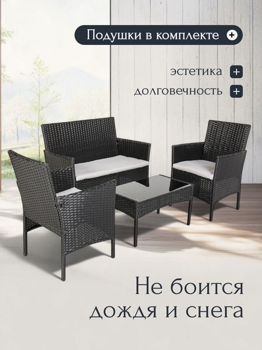 Вы можете приобрести «Мебель садовая Миранда, черная, стол, 71х41х39 см, 2 кресла, 1 диван, 150 кг, 57.5х58х84 см, серые подушки, 101х58х85 см» и другие товары в нашем интернет-магазине в Белгороде по низким ценам и с бесплатным самовывозом.