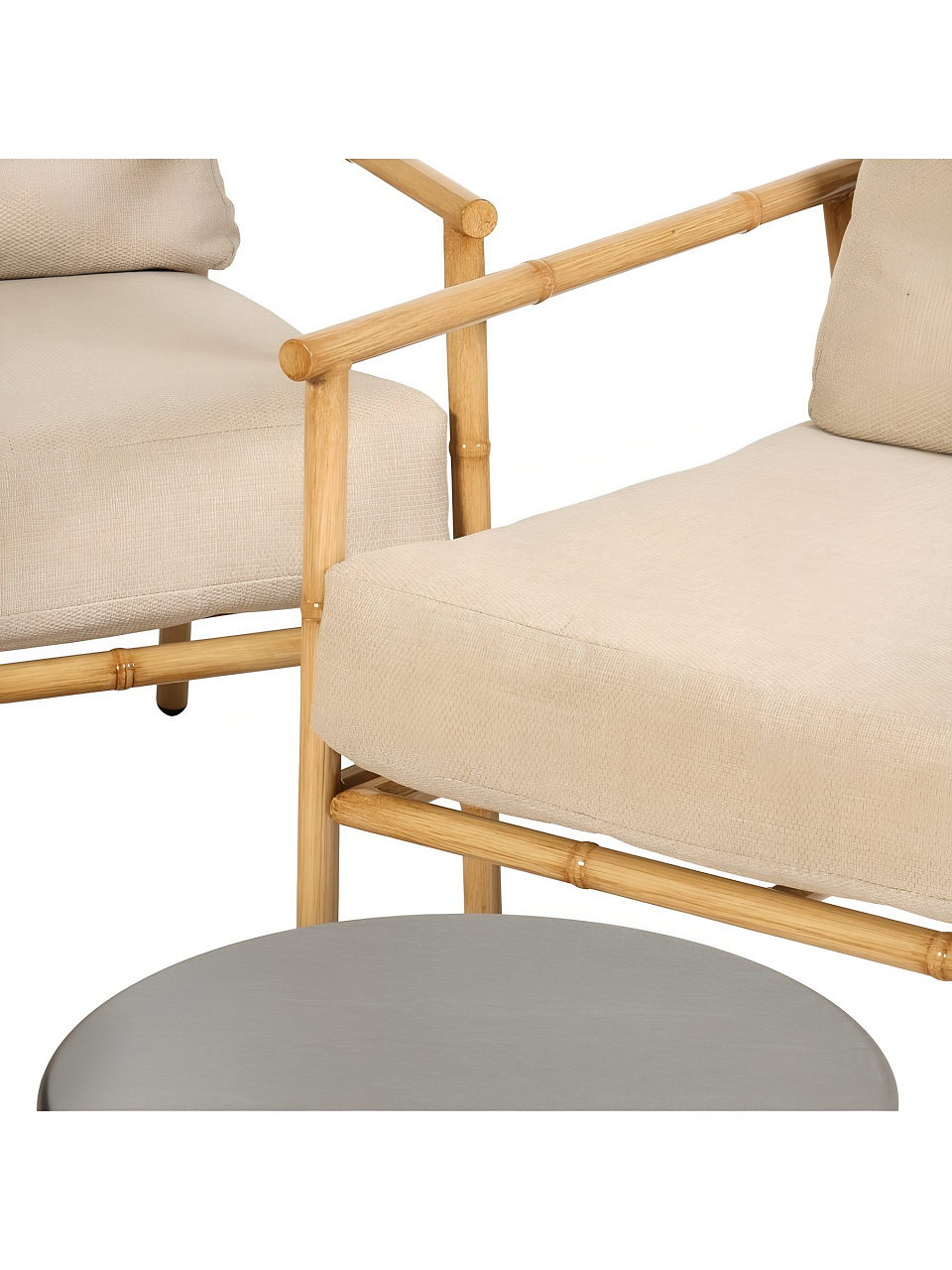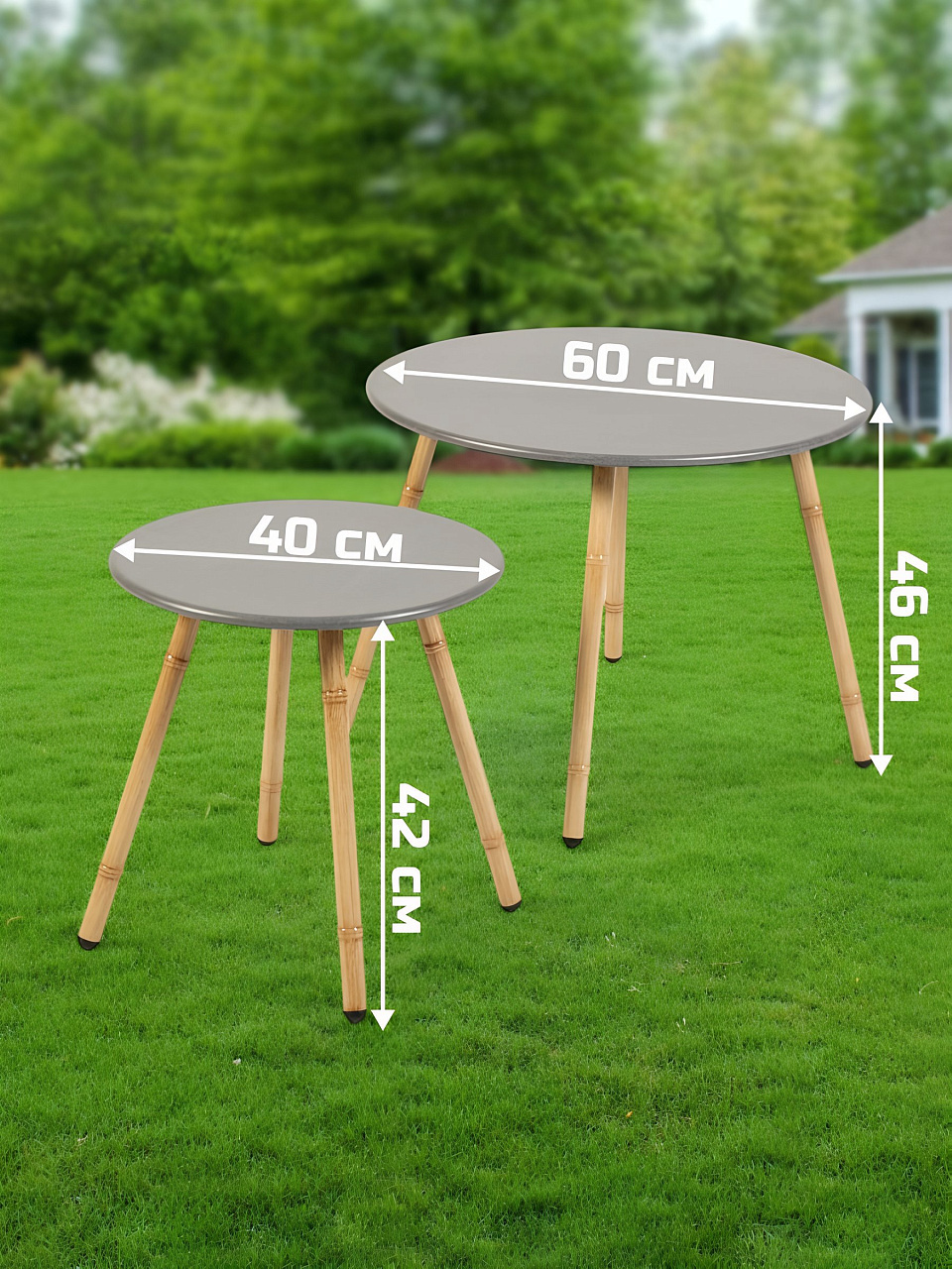 - Эргономичные размеры: кресло 63×72×83 см, диван 72×122×83 см, столы 60×46 и 40×42 см — удобно для любой площадки;